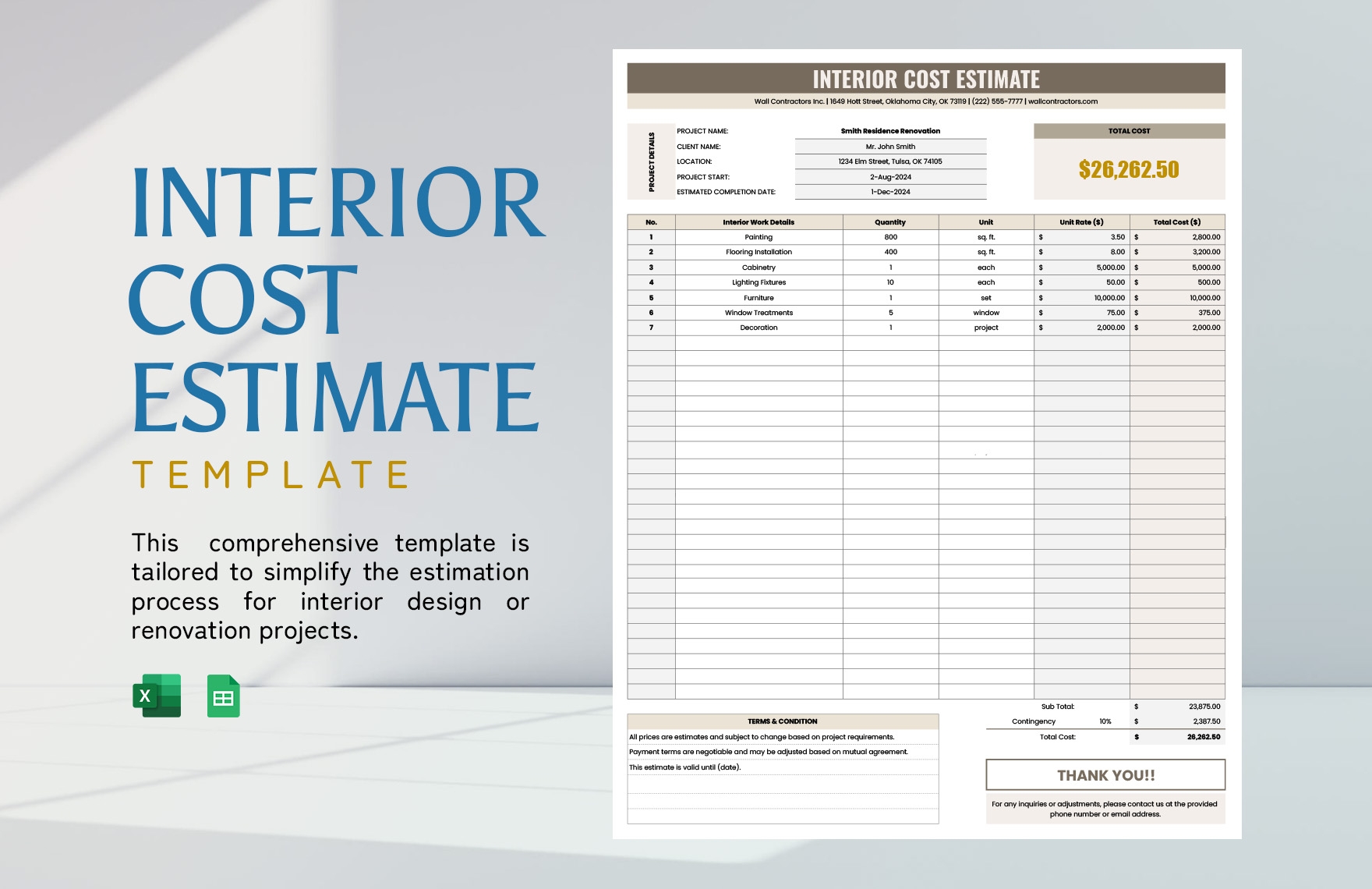 Interior Cost Estimate Template In Excel Google Sheets Download