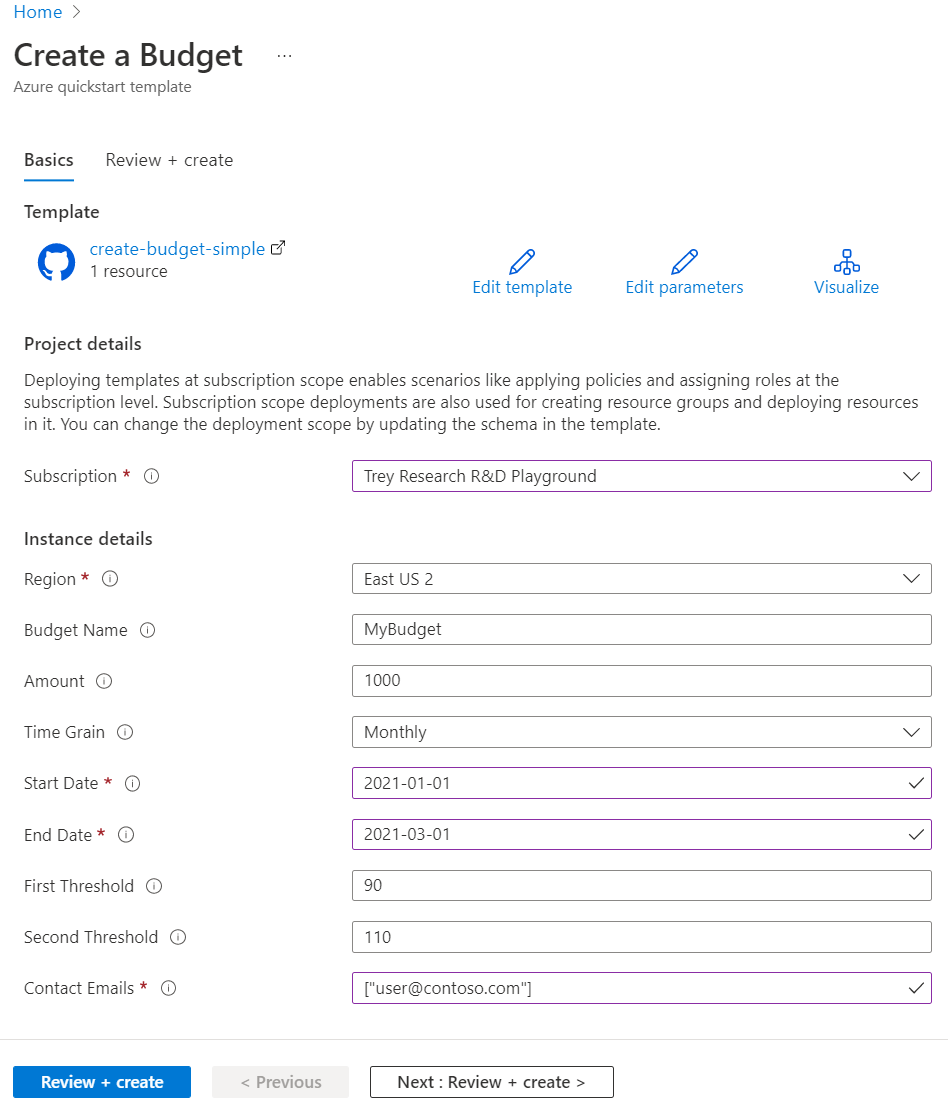 Quickstart Create A Budget With An Azure Resource Manager