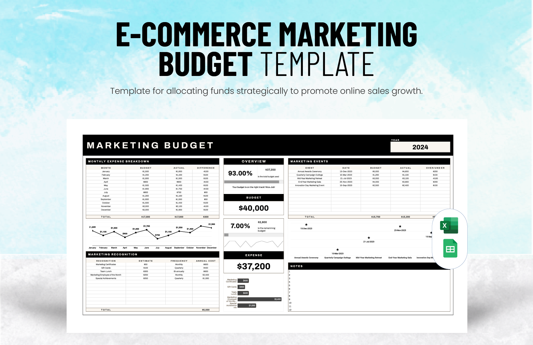 E commerce Marketing Budget Template In Excel Google Sheets