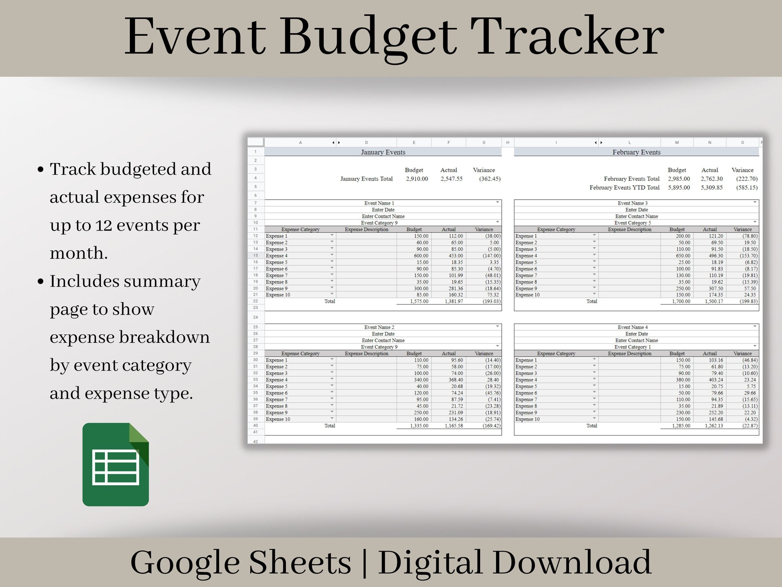 Event Budget Template Sheets