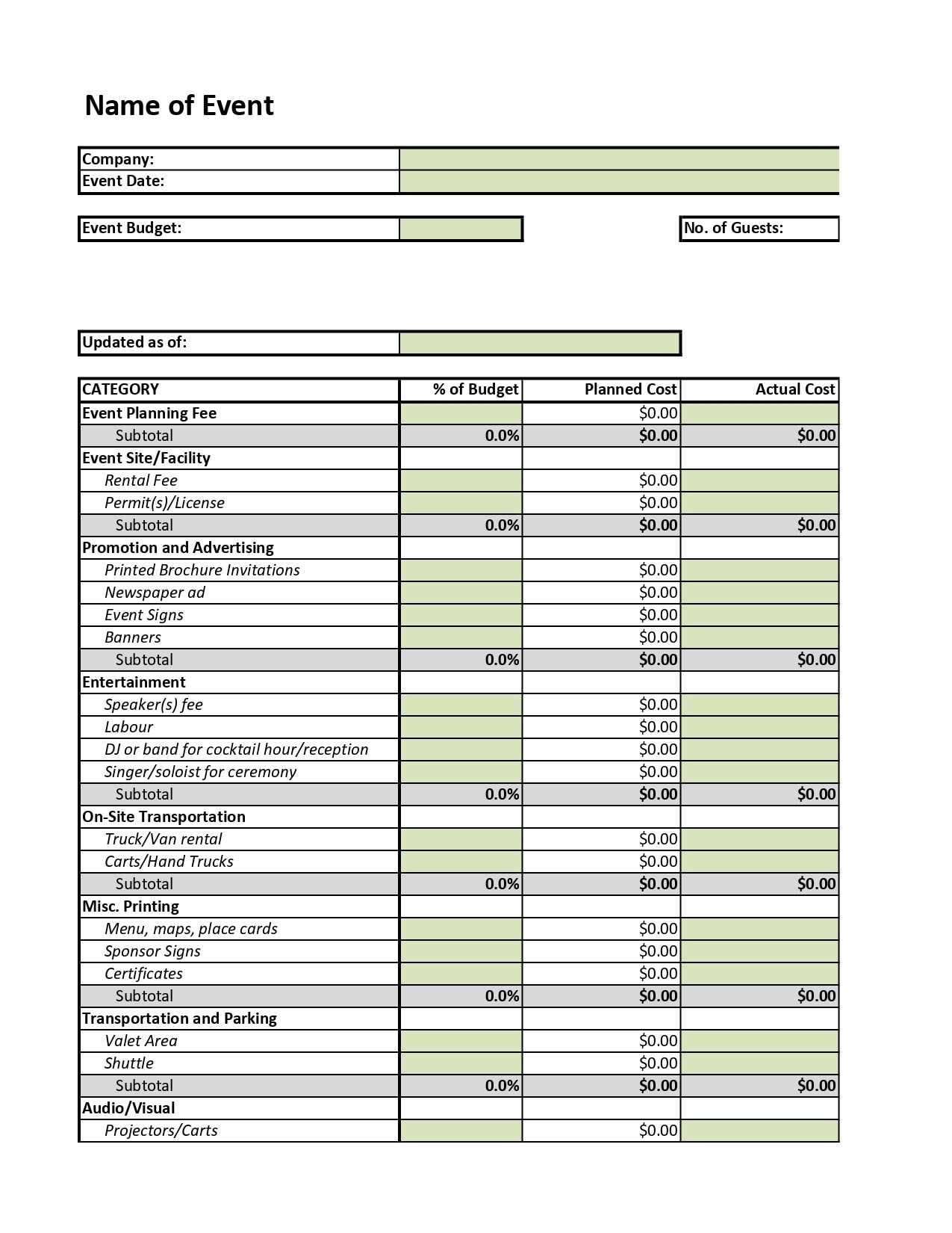 Event Budget Excel Template