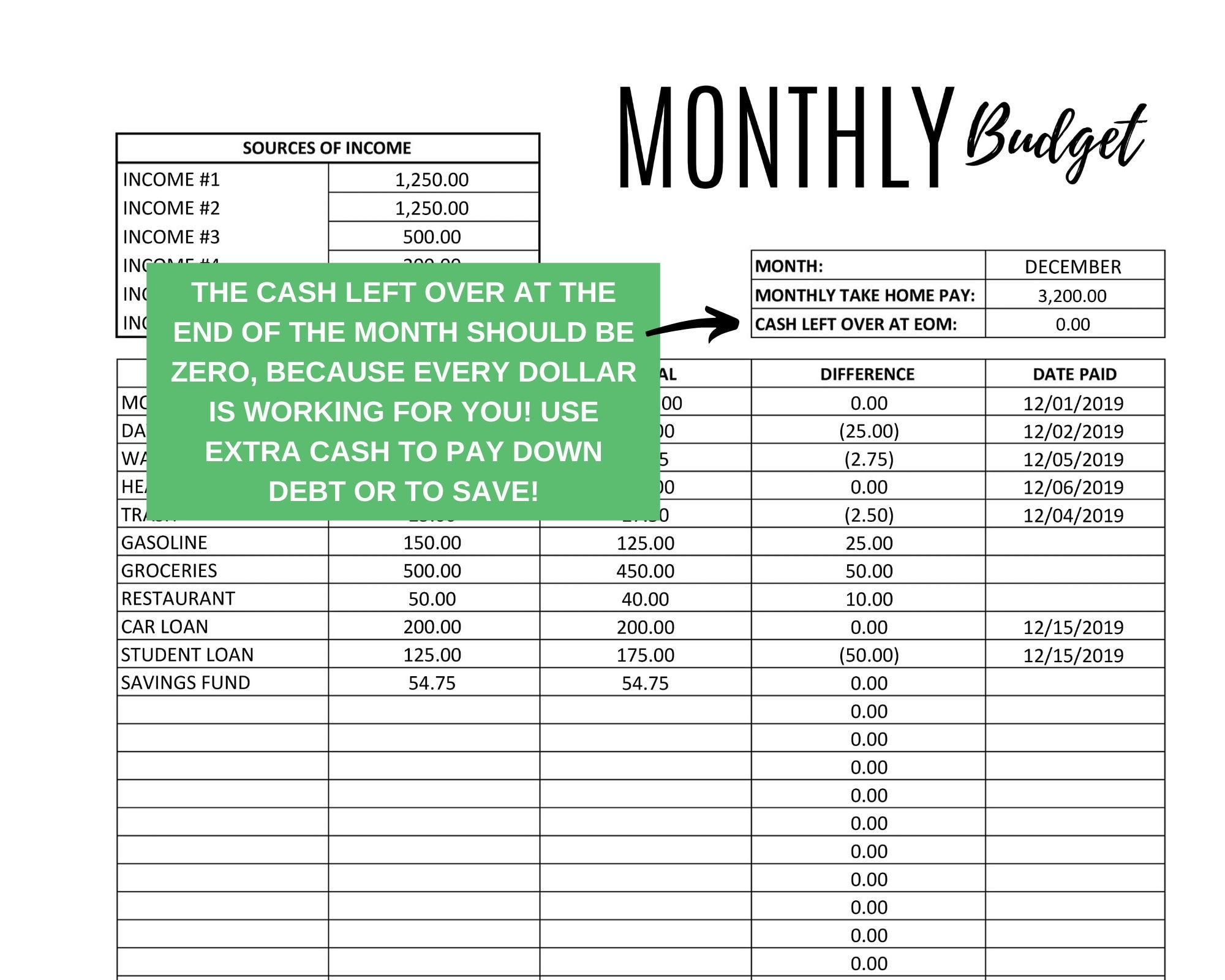 Monthly Budget Template Dainty Dollar