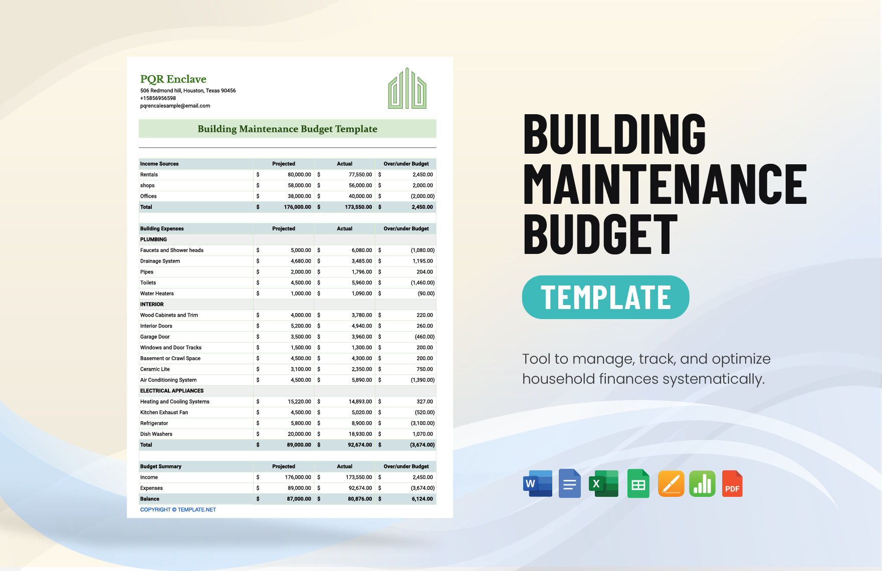 Building Maintenance Budget Template In Google Docs Apple Numbers