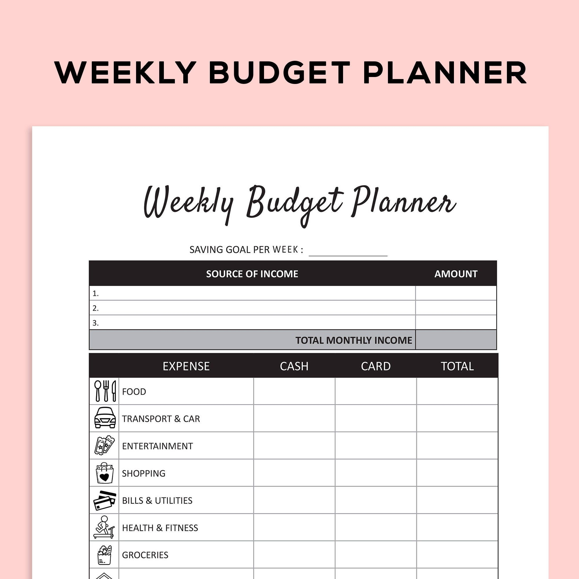Printable Family Budget Planner Template Daily Weekly And Monthly Income Expense Tracker Budget Digital Download Etsy