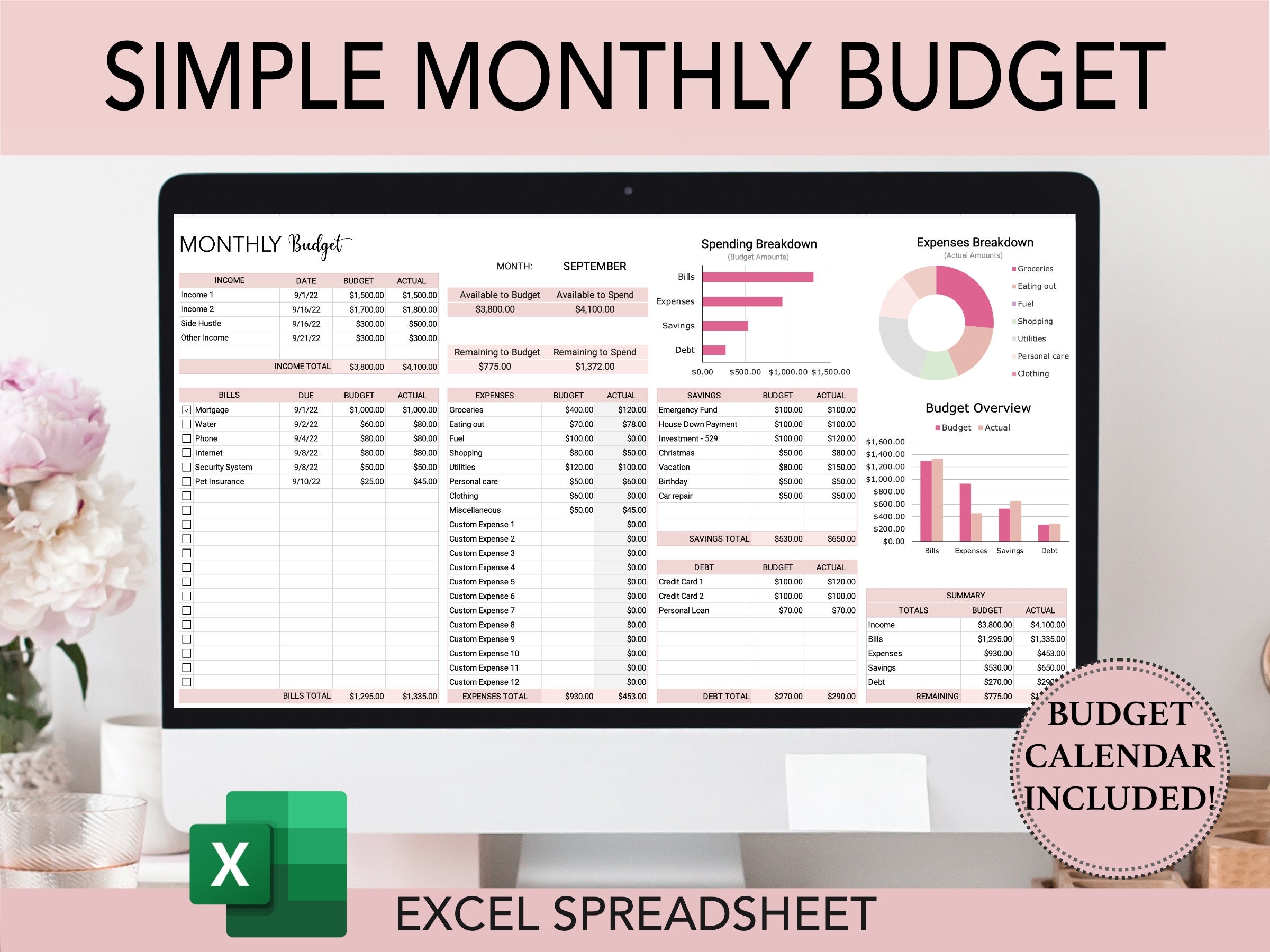 Monthly Budget Spreadsheet Excel Budget Template Excel Budget Spreadsheet Budget Template Personal Budget Etsy