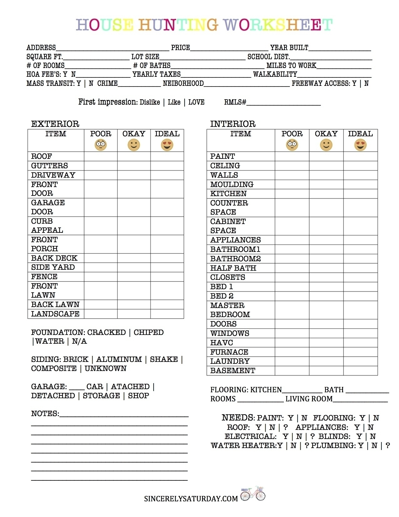 TIPS FOR FIRST TIME HOME BUYERS FREE HOUSE HUNTING WORKSHEET Sincerely Saturday
