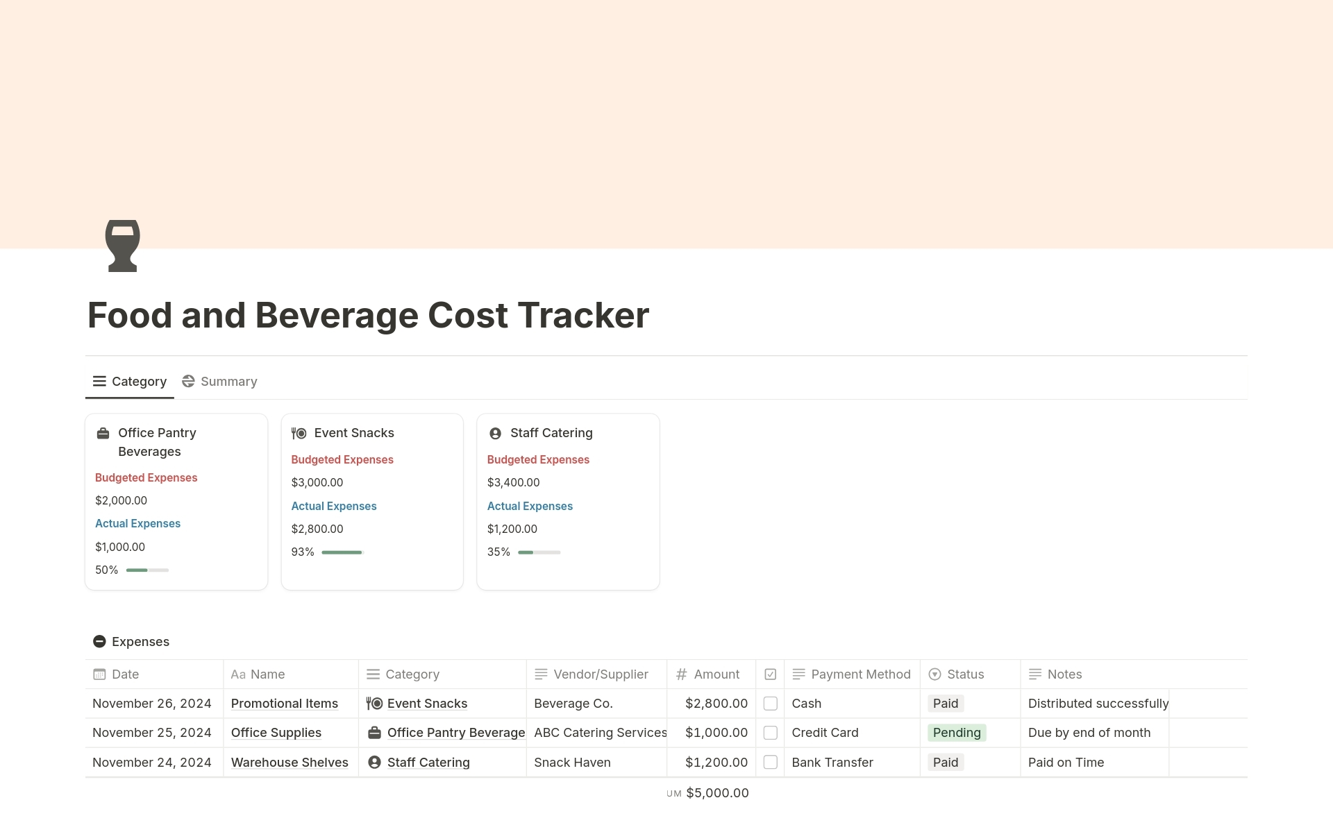 Food And Beverage Cost Tracker Template Notion Marketplace
