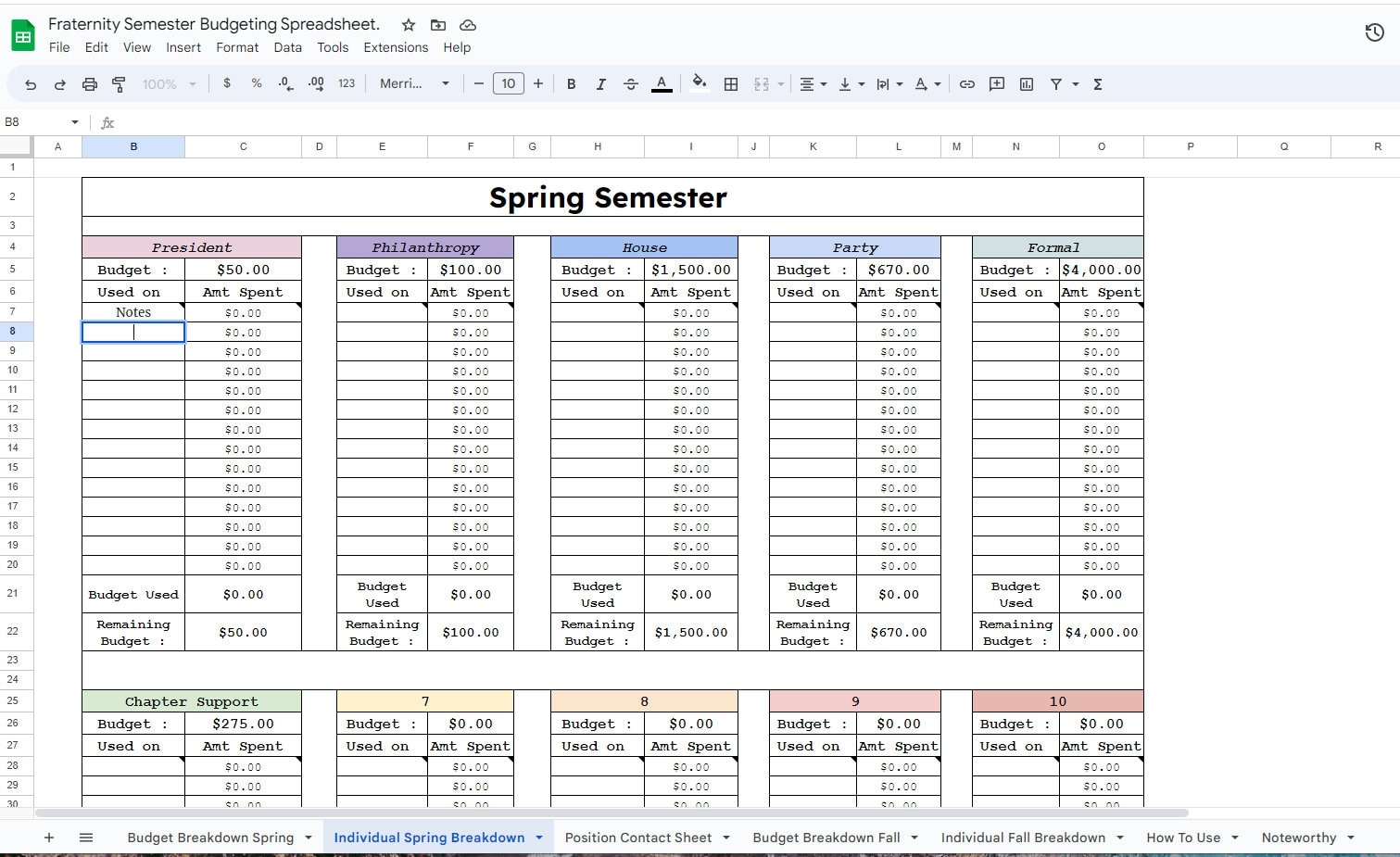 Google Sheets Fraternity Greek Life Budget Spreadsheet Etsy