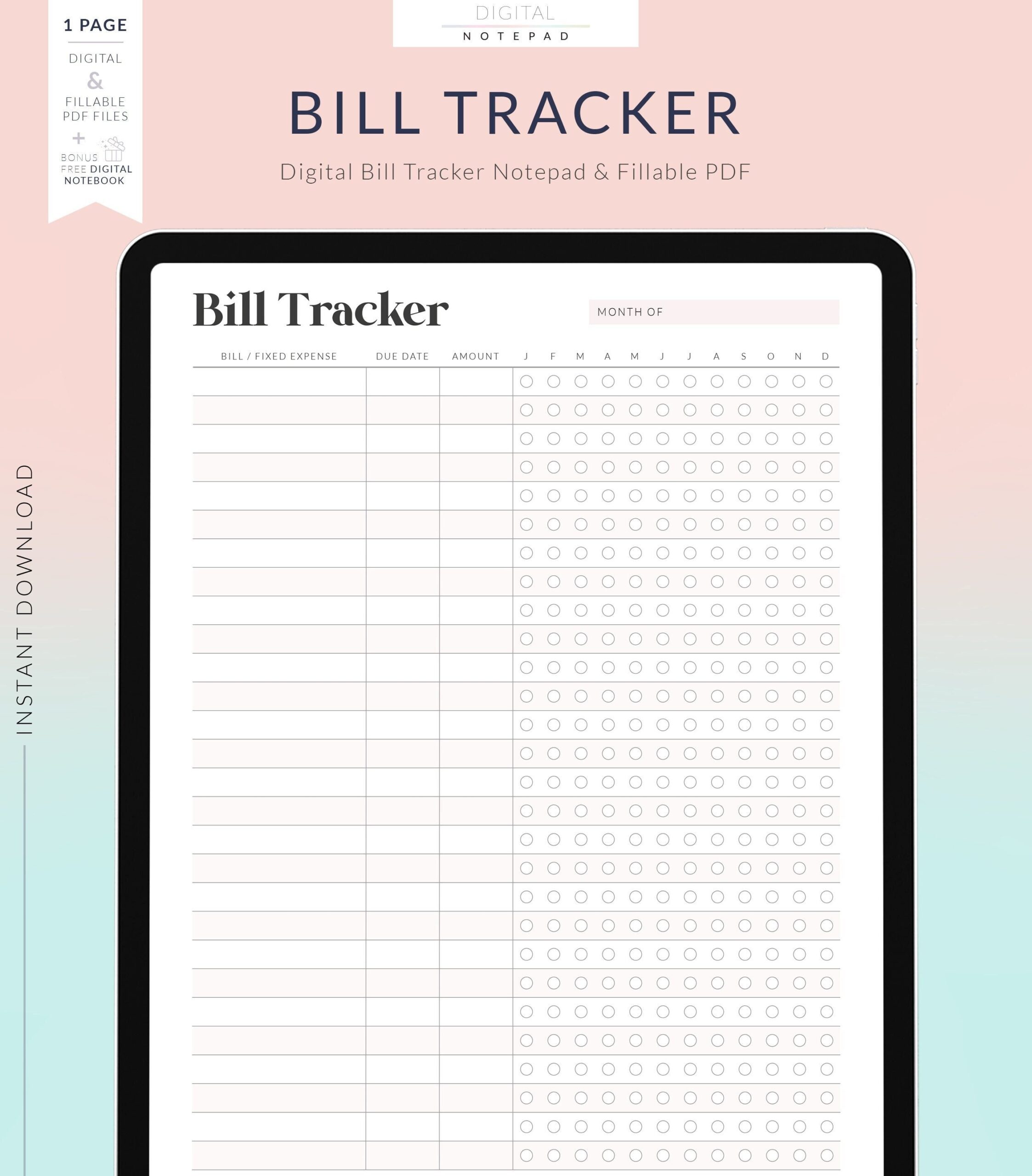 Digital Bill Tracker For Goodnotes Bill Pay Checklist Organizer