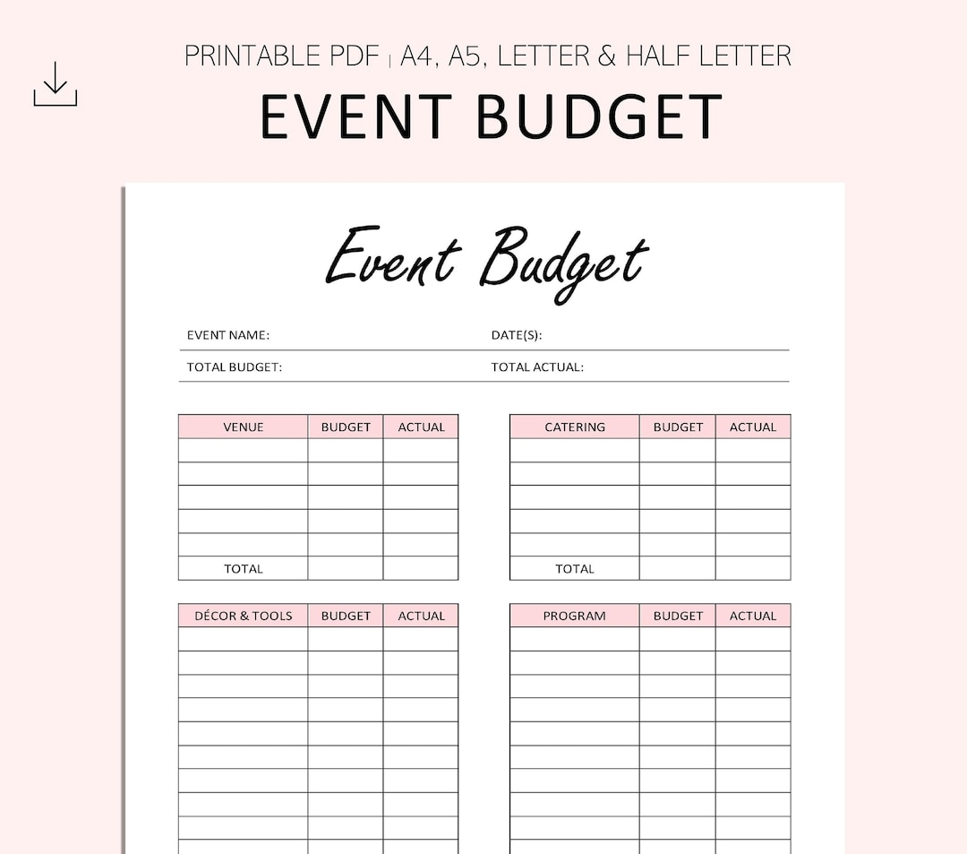 Event Budget Printable Event Planning Event Expenses Tracker PDF A4 A5 Letter Half Letter Etsy Australia