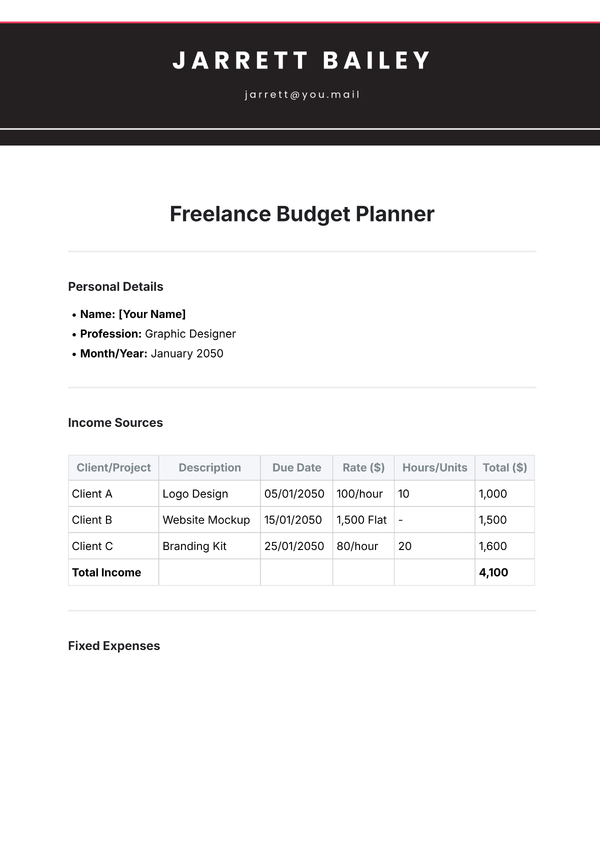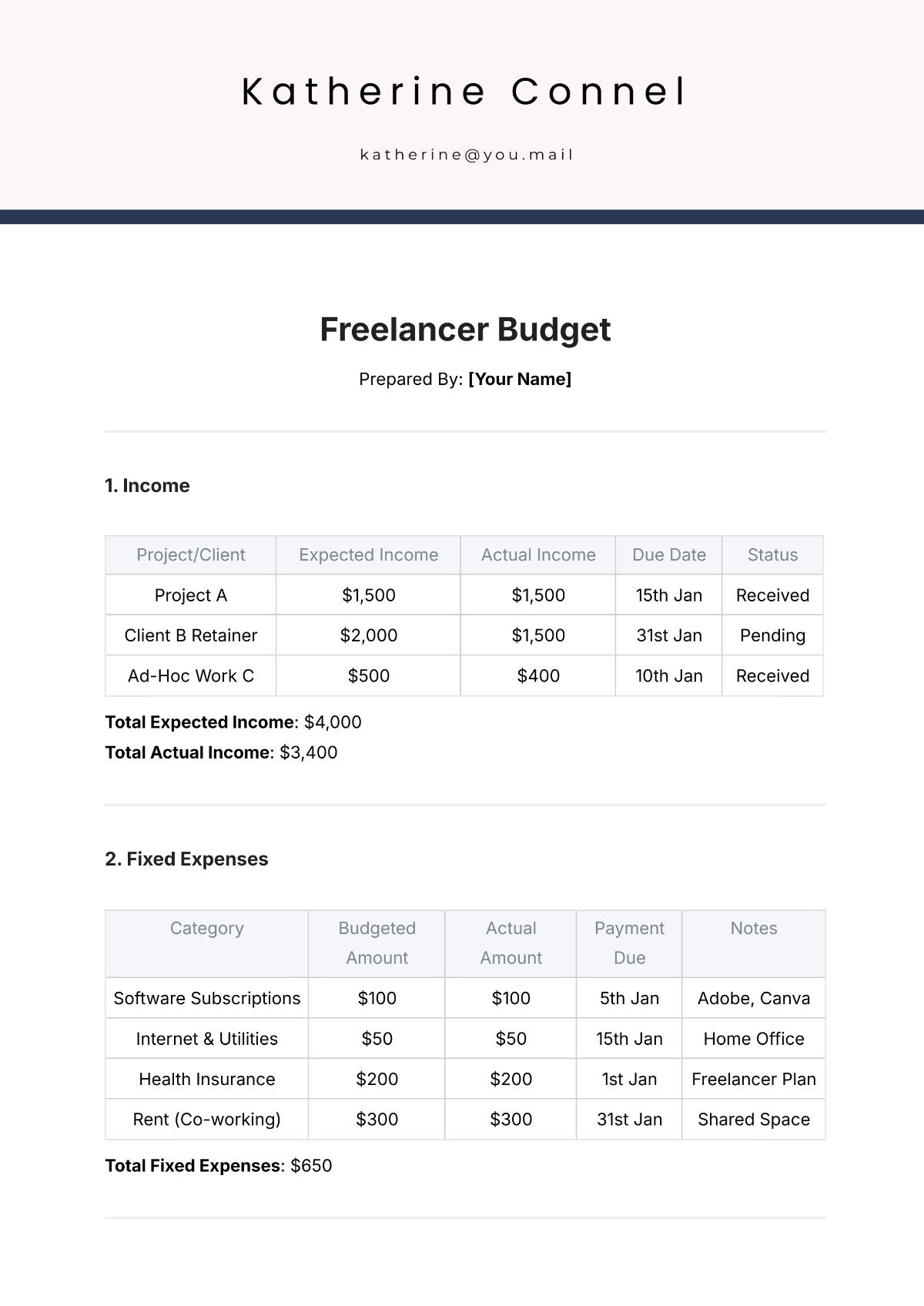 Freelance Budget Template