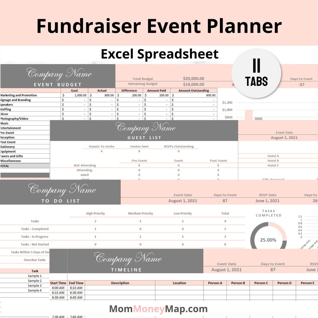 Fundraiser Event Planner Excel Spreadsheet Template Gala Planning Organizer With A Party Checklist Budget And Other Digital Forms Etsy
