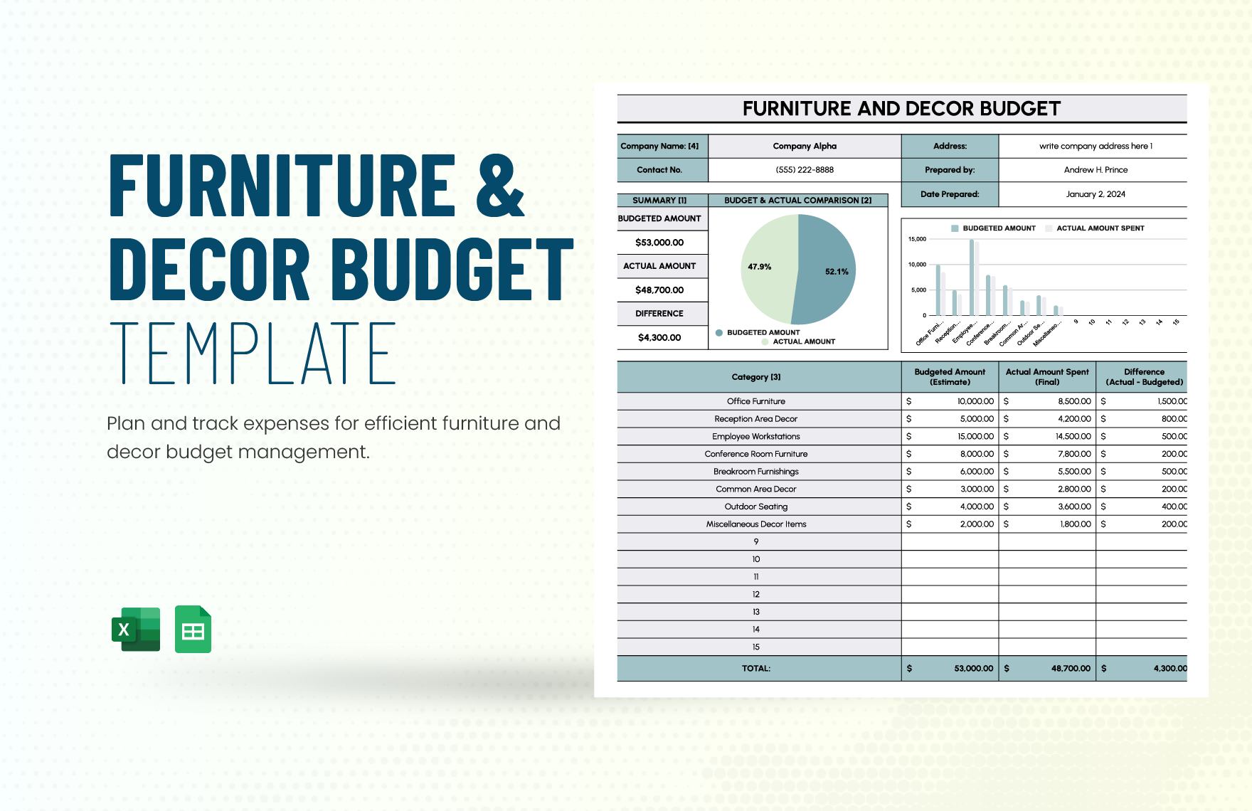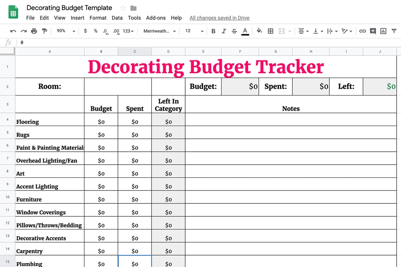 Furniture And Decor Budget Template In Excel Google Sheets Download Template