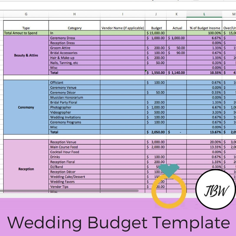 Wedding Budget Template Zero based Budget Excel Download Etsy Australia