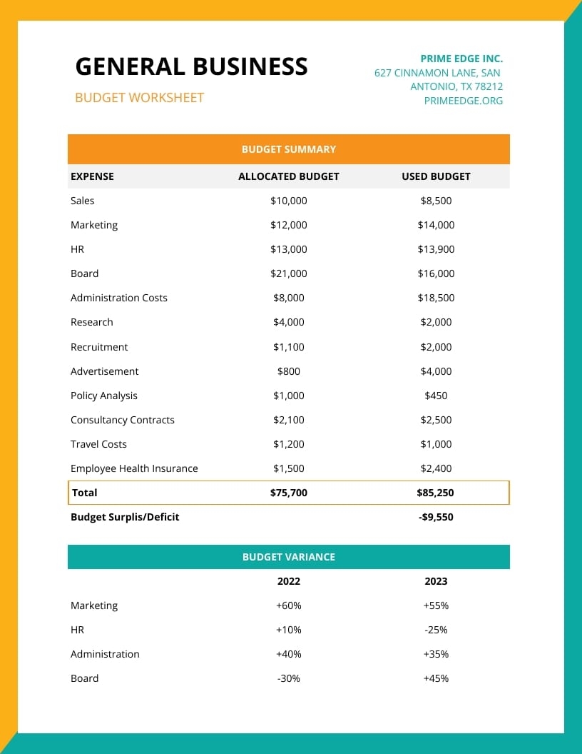 General Business Budget Worksheet Template Visme