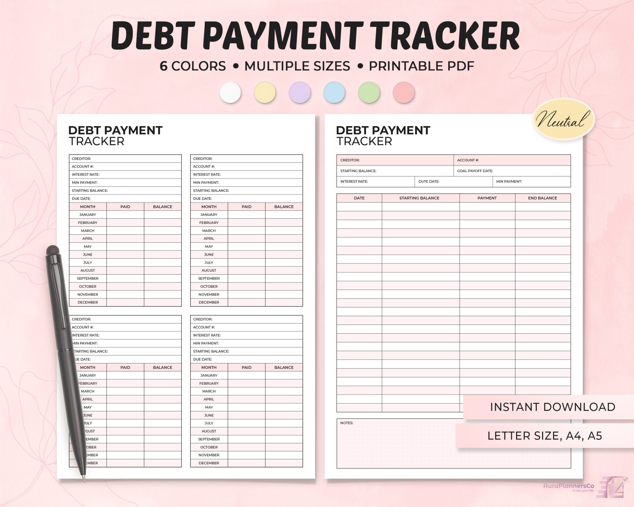 Debt Payment Tracker Printable Printable Planner Monthly Budget
