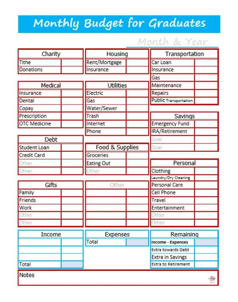 Best Budget Worksheet For Graduates Organized 31