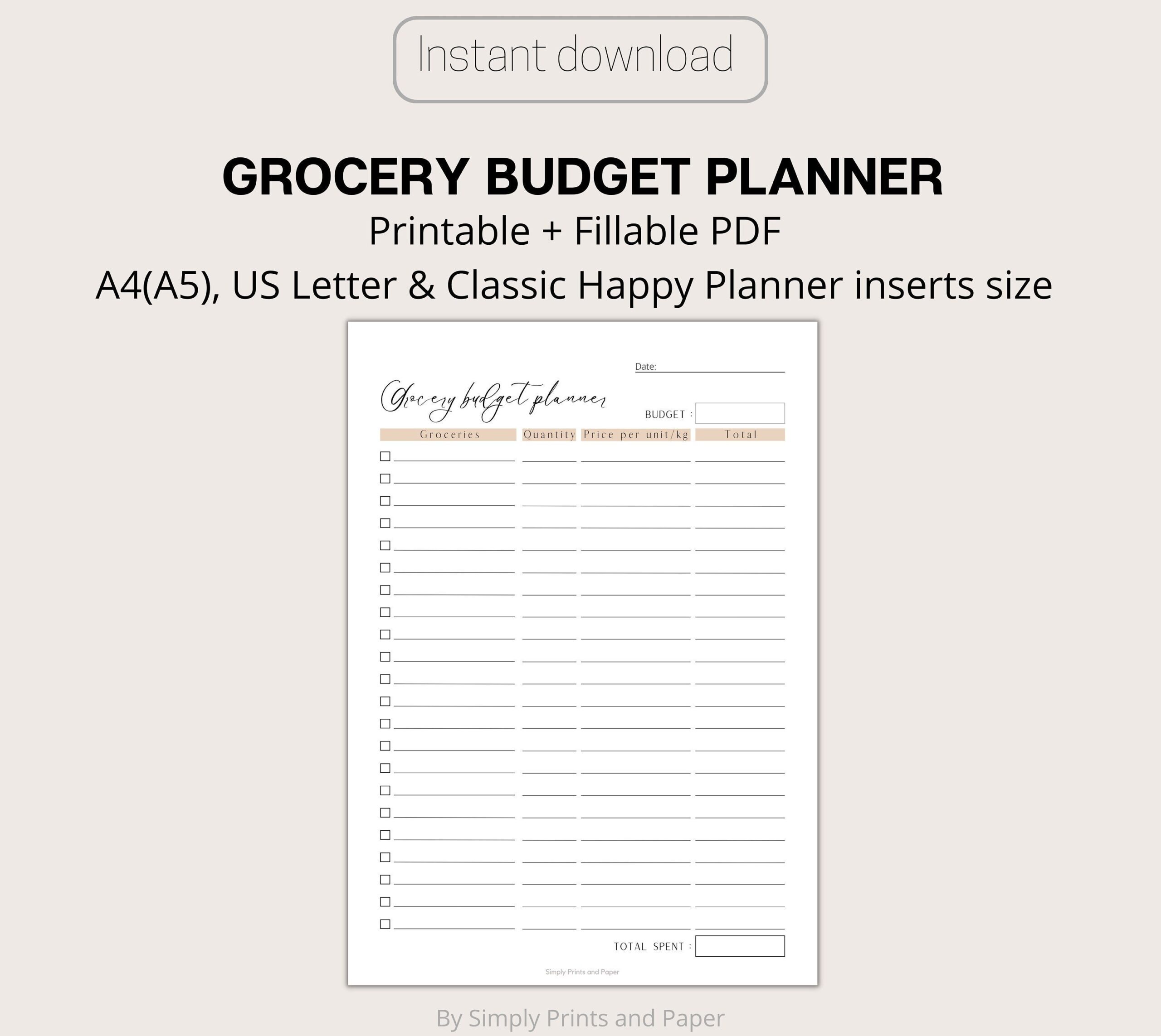 Grocery Budget Planner Printable Food Budget Digital Grocery Budget Planner Fillable PDF A4 US Letter Classic Happy Planner Etsy