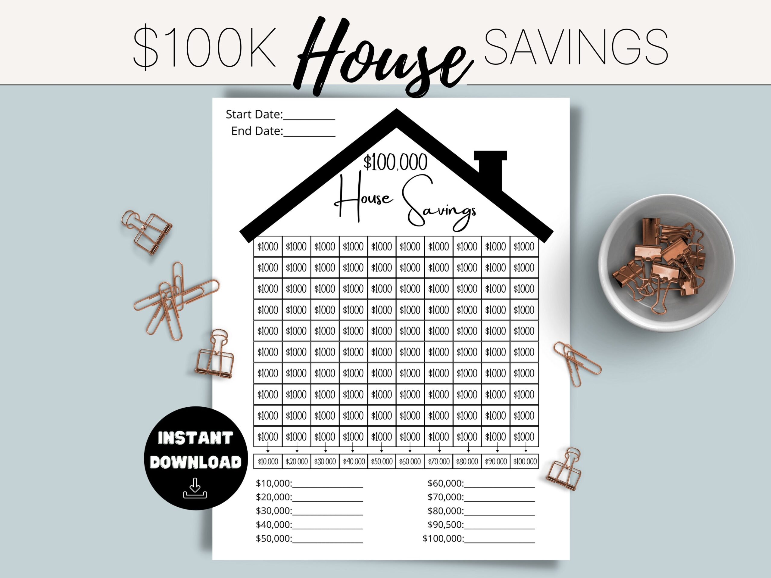 100k House Savings Challenge Tracker Template Printable Savings