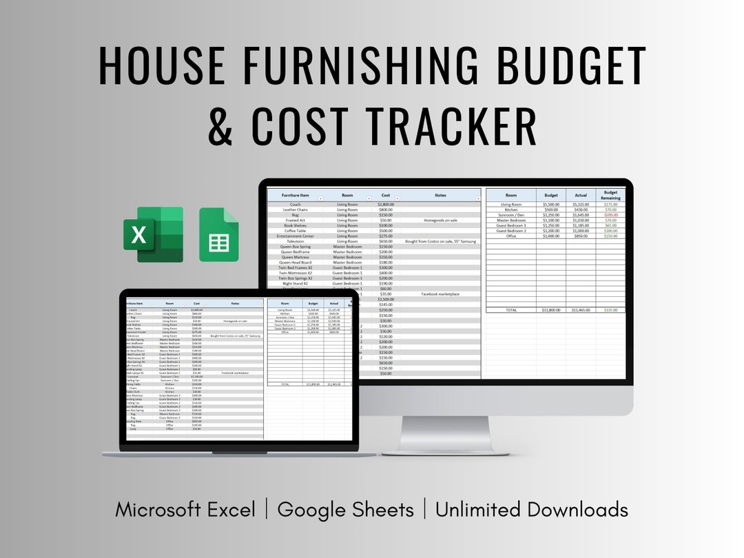 House Furnishing Budget And Cost Tracker For Excel And Google Sheets Airbnb Furniture Cost Tracker Rental Property Furnishing Budget Etsy