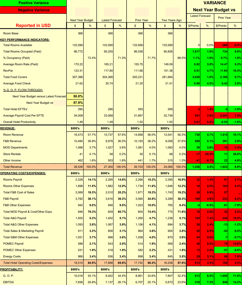 Hotel Budget Template CFOTemplates
