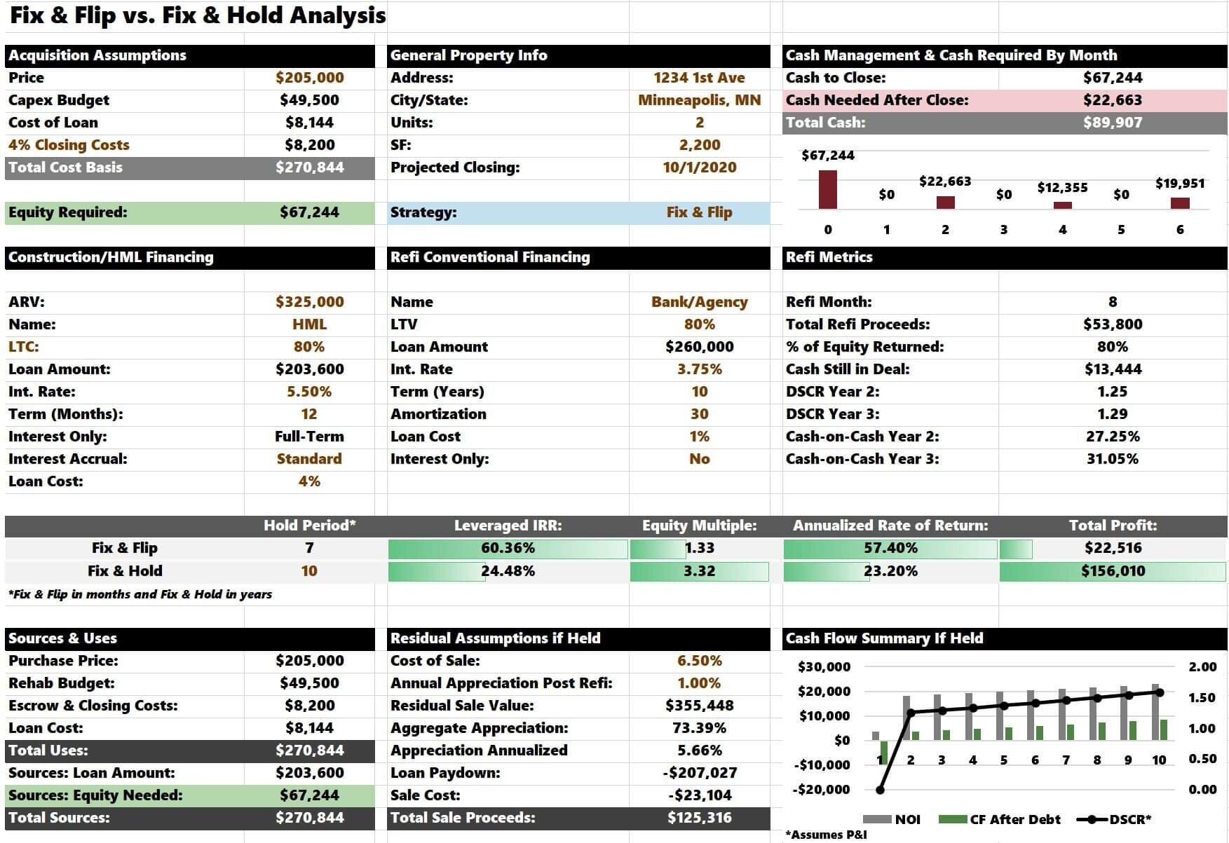 Property Flipping Tracker House Flip Template Rehab Cost