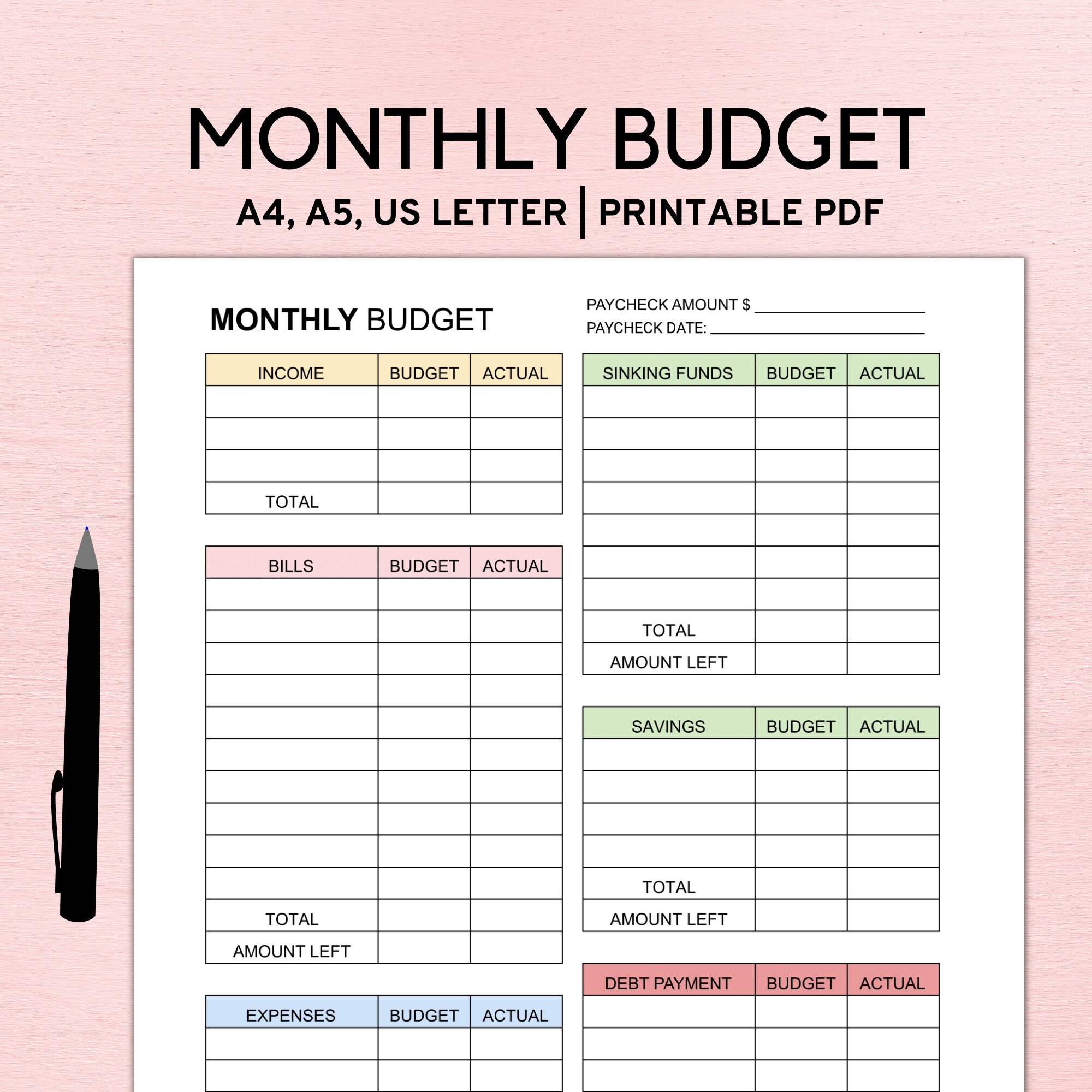 Monthly Budget Planner Printable Monthly Bills Tracker Paycheck Budget Printable Budget Template Financial Planner A4 A5 Letter PDF Etsy
