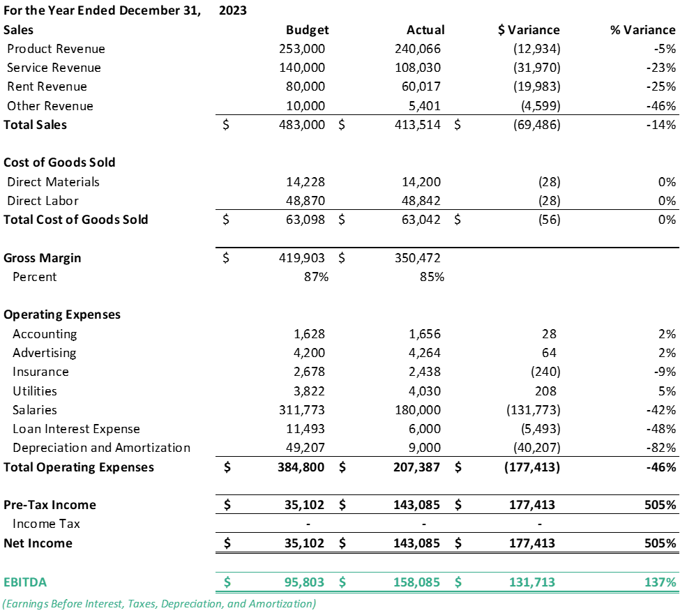 Income Statement Actual Vs Budget Template