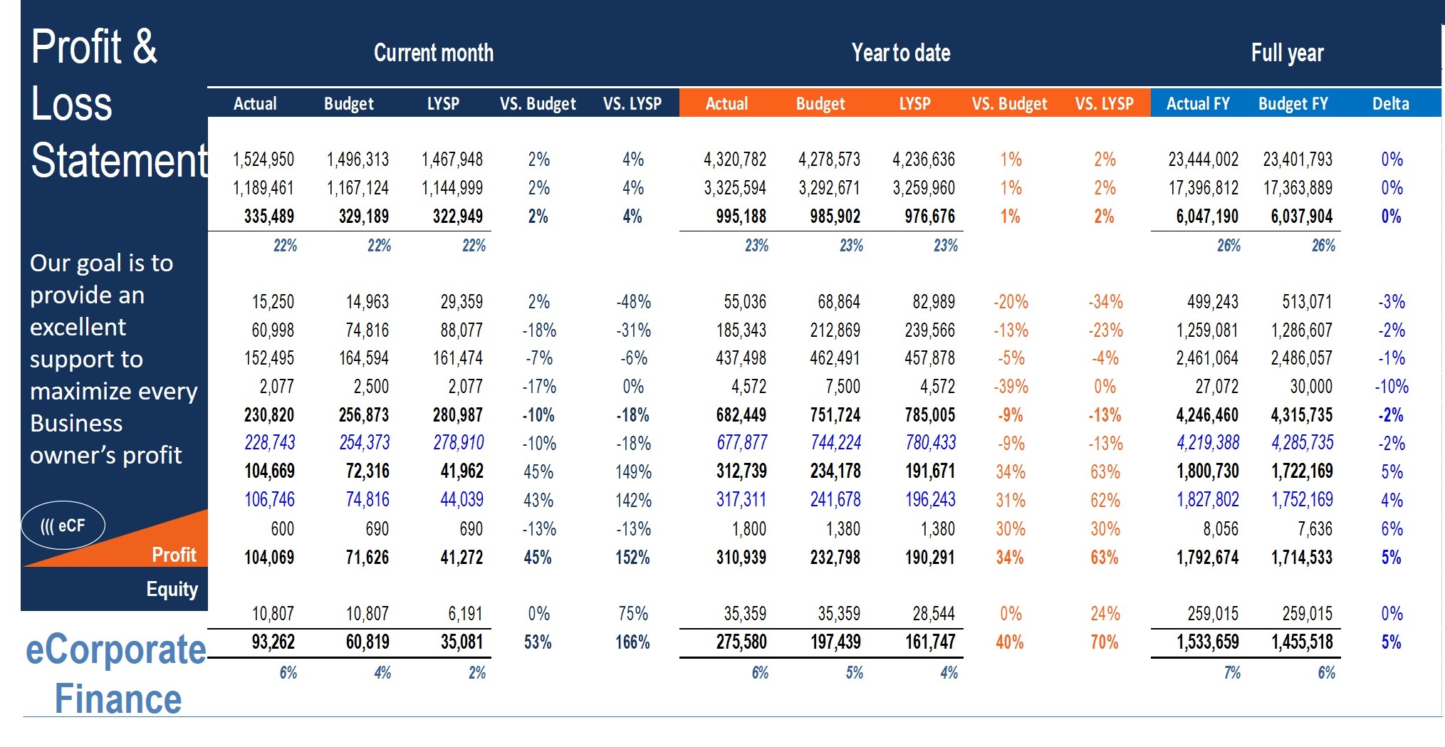 Profit U0026 Loss Statement Actual Vs Budget U0026 Previous Year Eloquens