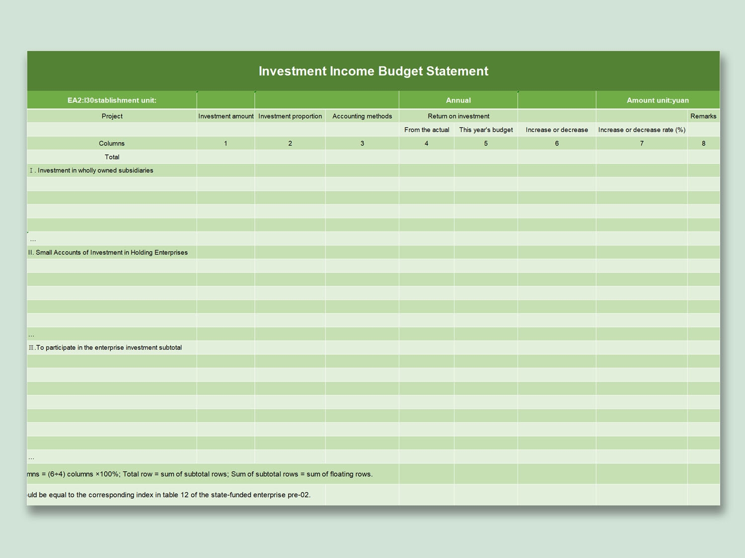 EXCEL Of Investment Income Budget Statement xlsx WPS Free Templates