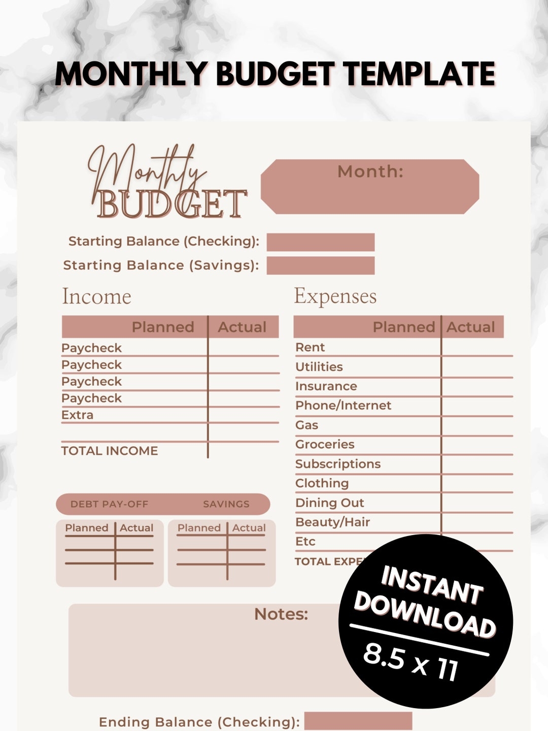 Monthly Budget Template Printable Planner Financial Planner Expense Tracker Money Tracker Planner Inserts Etsy