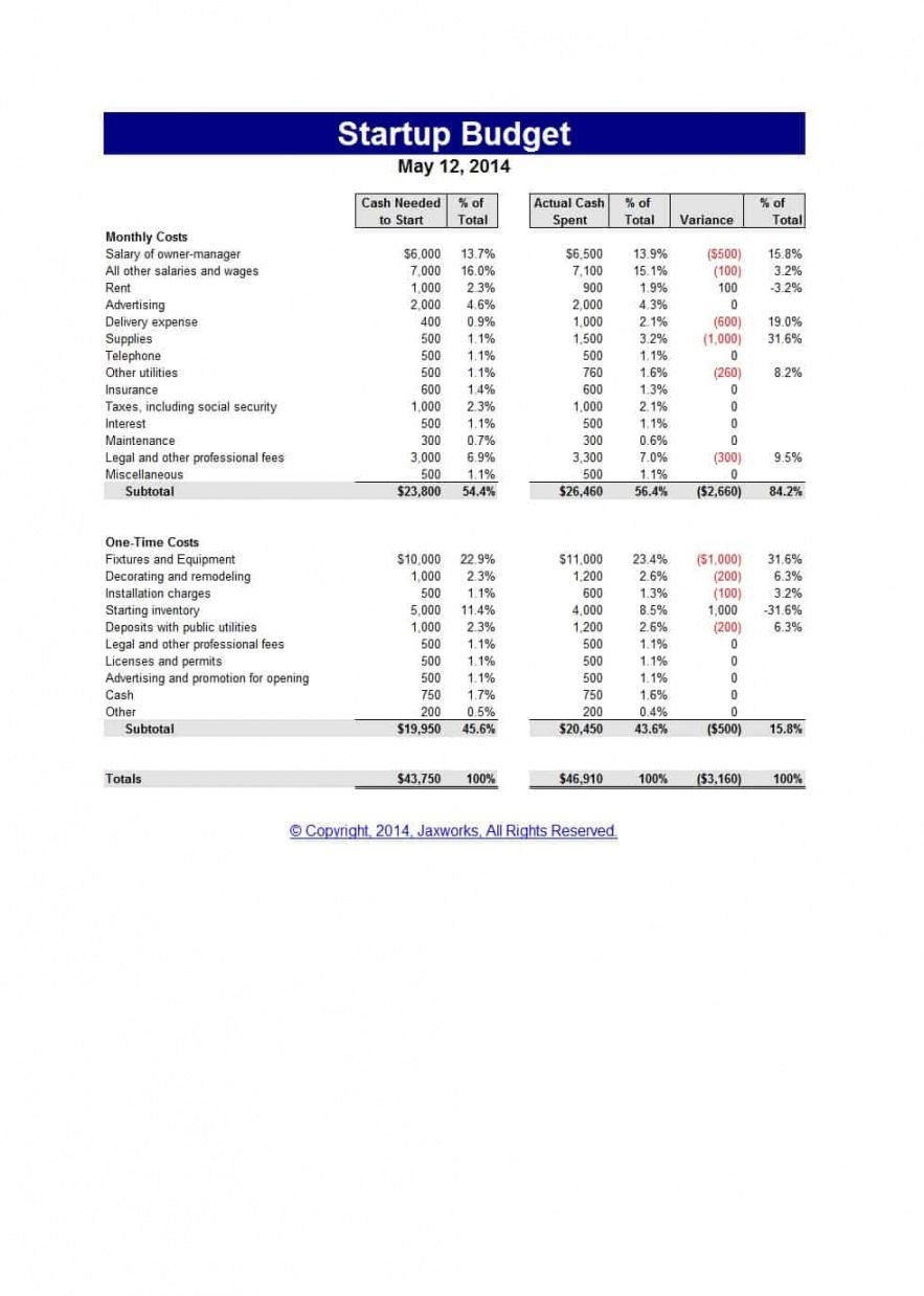50 Best Startup Budget Templates Free Download TemplateLab