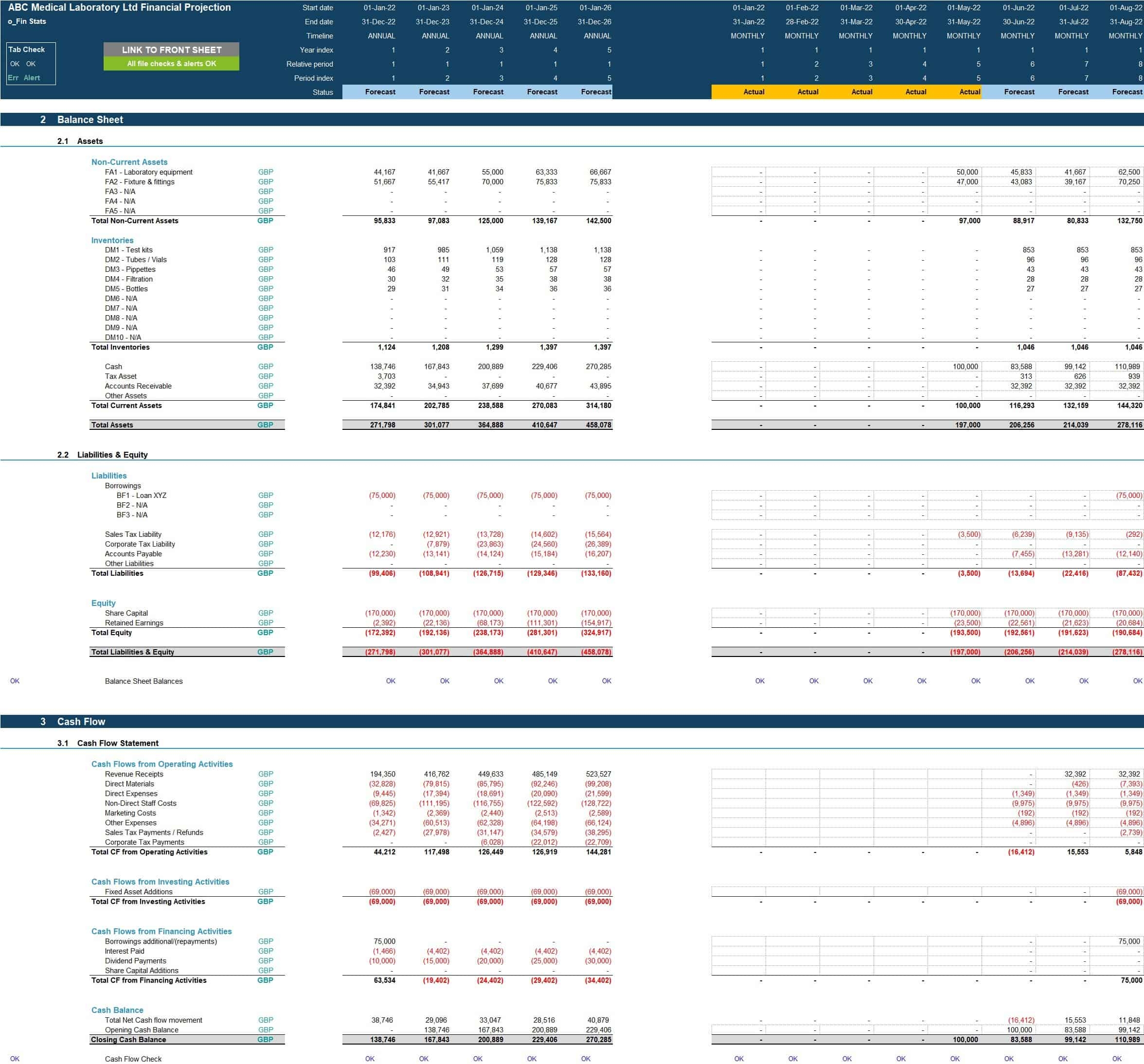 Medical Clinical Laboratory Financial Projection 3 Statement Model Template Excel XLS