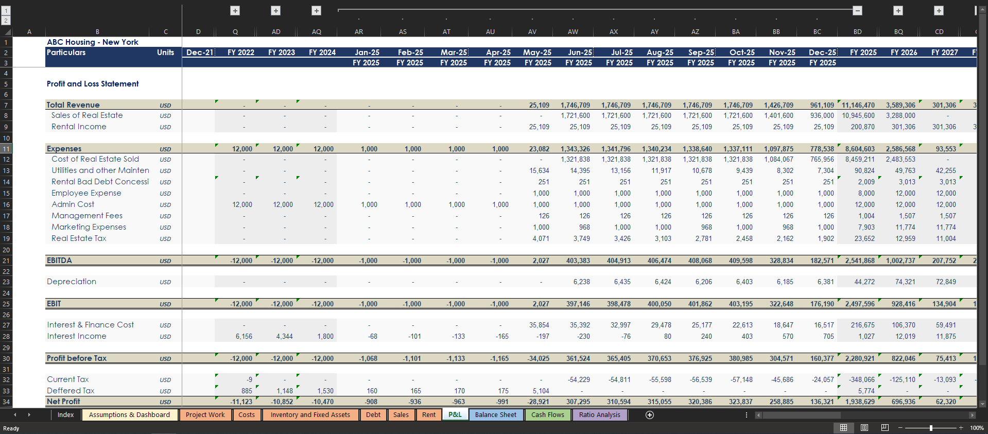 Real Estate Land Development Model Template Excel XLS