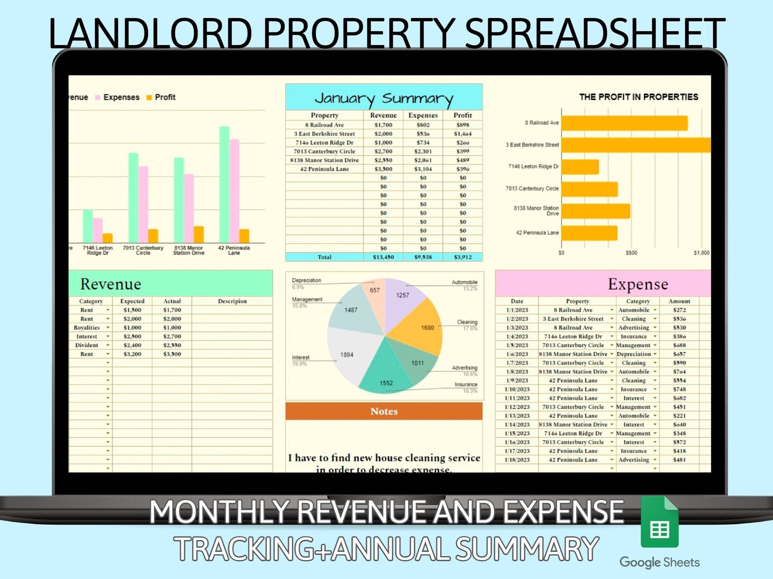 Landlord Rental Property Spreadsheet Template Google Sheets Landlord Tracker Income U0026 Expense Real Estate Spreadsheet Airbnb Planner Etsy