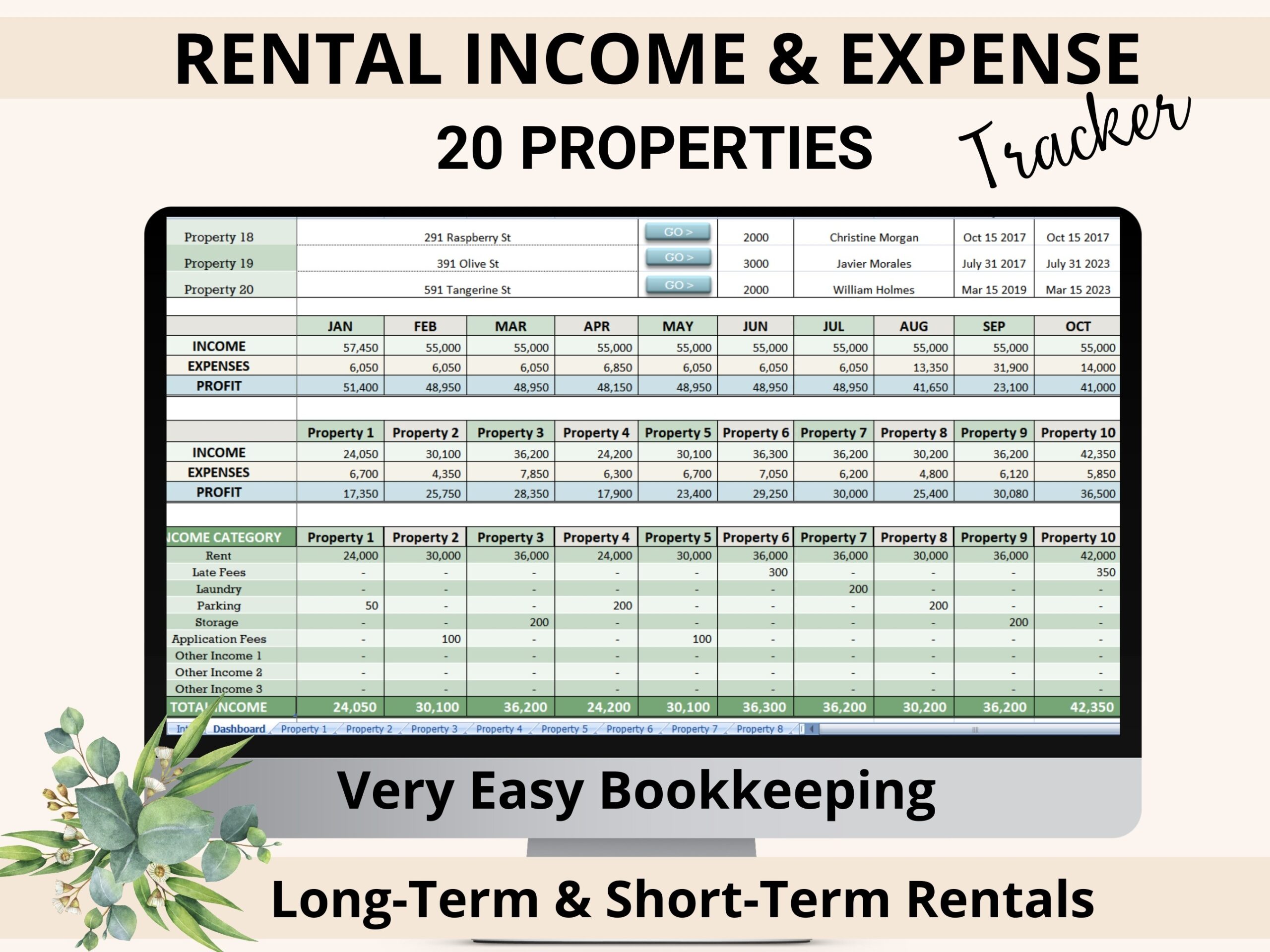 Landlord Rent Ledger Spreadsheet Rental Property Income And Expense Template Property Management Spreadsheet Etsy