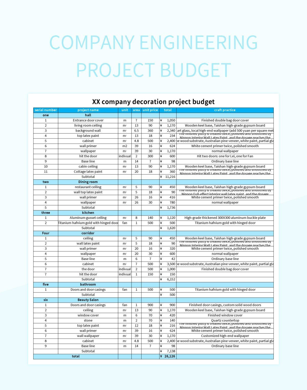 Company Engineering Project Budget Excel Template And Google Sheets File For Free Download Slidesdocs