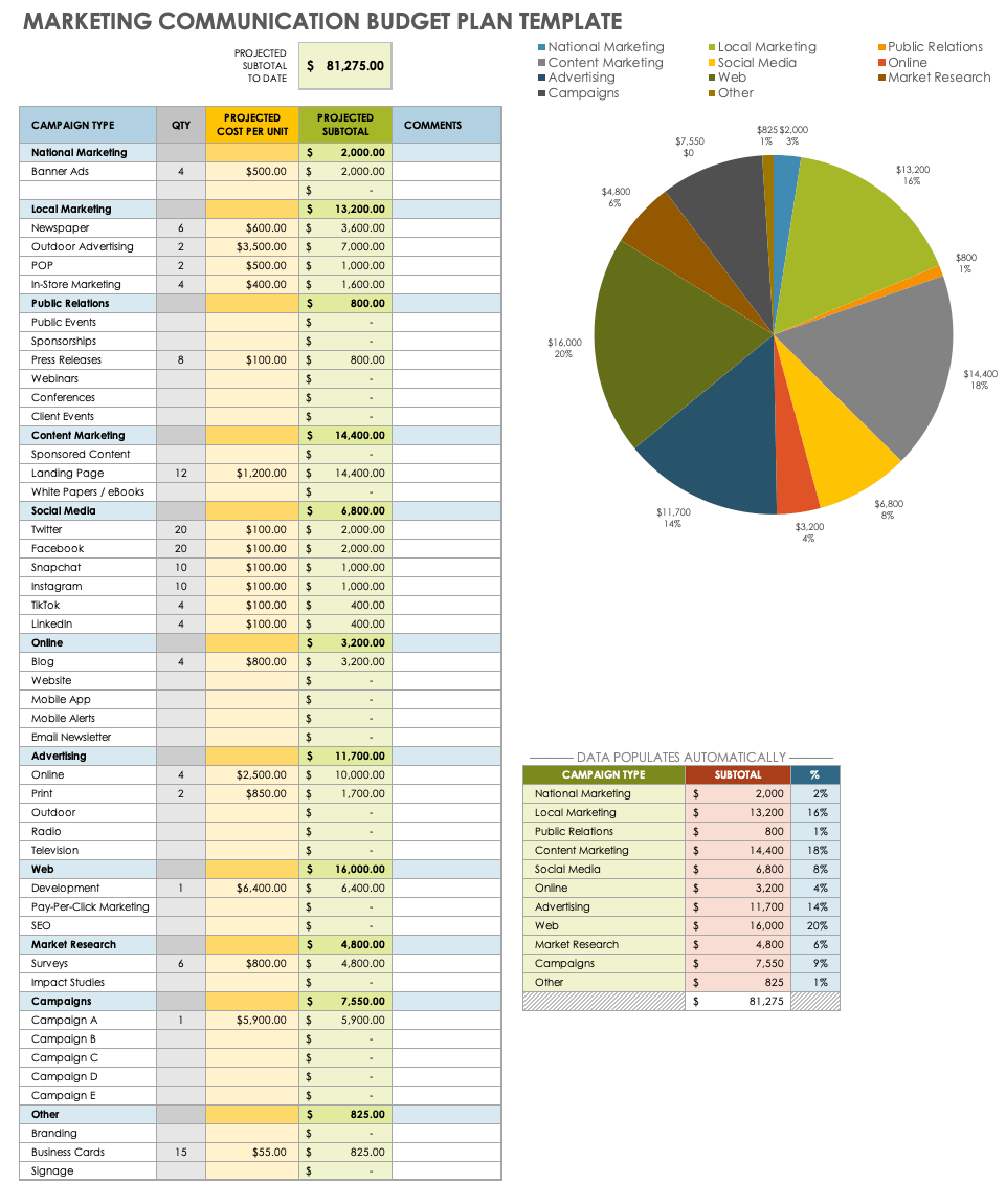 Marketing Communications Budget Template