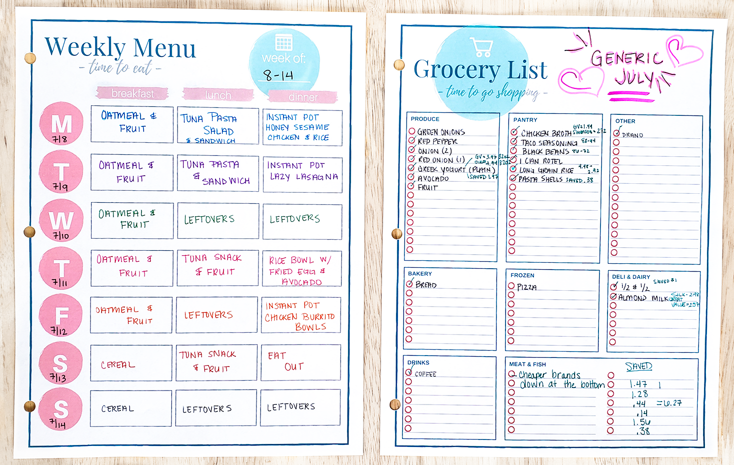 July Budget Monthly Meal Plan The Budget Mom