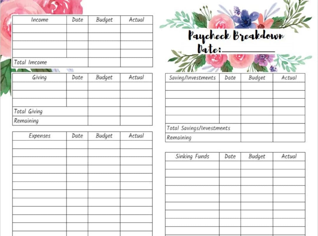 Floral Paycheck Budget Breakdown Printable Budget By Paycheck The Budget Mom Dave Ramsey Zero Based Budget Digital Tracker Etsy