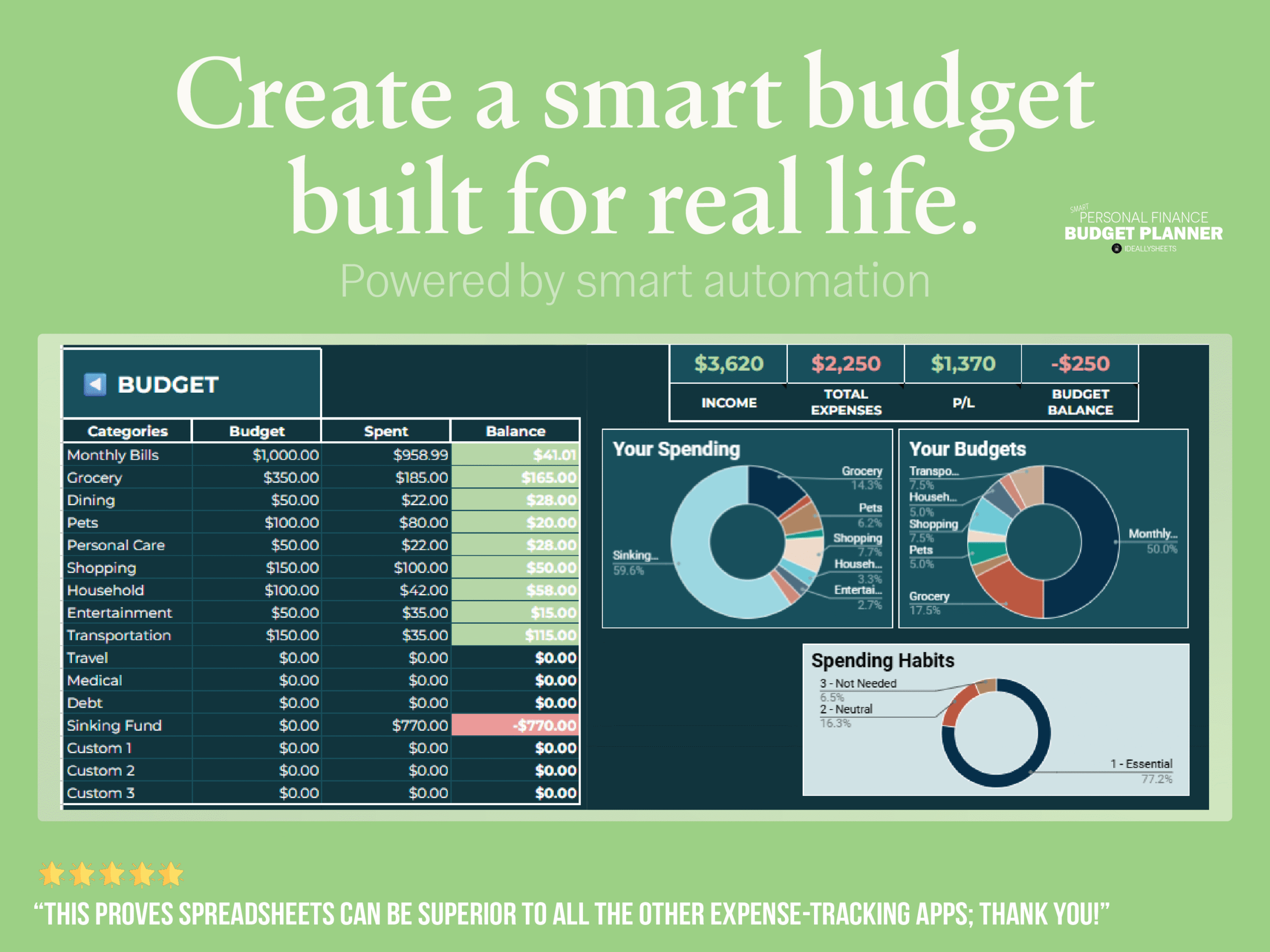 Smart Personal Finance U0026 Monthly Budget Planner Template Spreadsheet For Expense Tracking And Financial Planning With Savings And Debt Tools