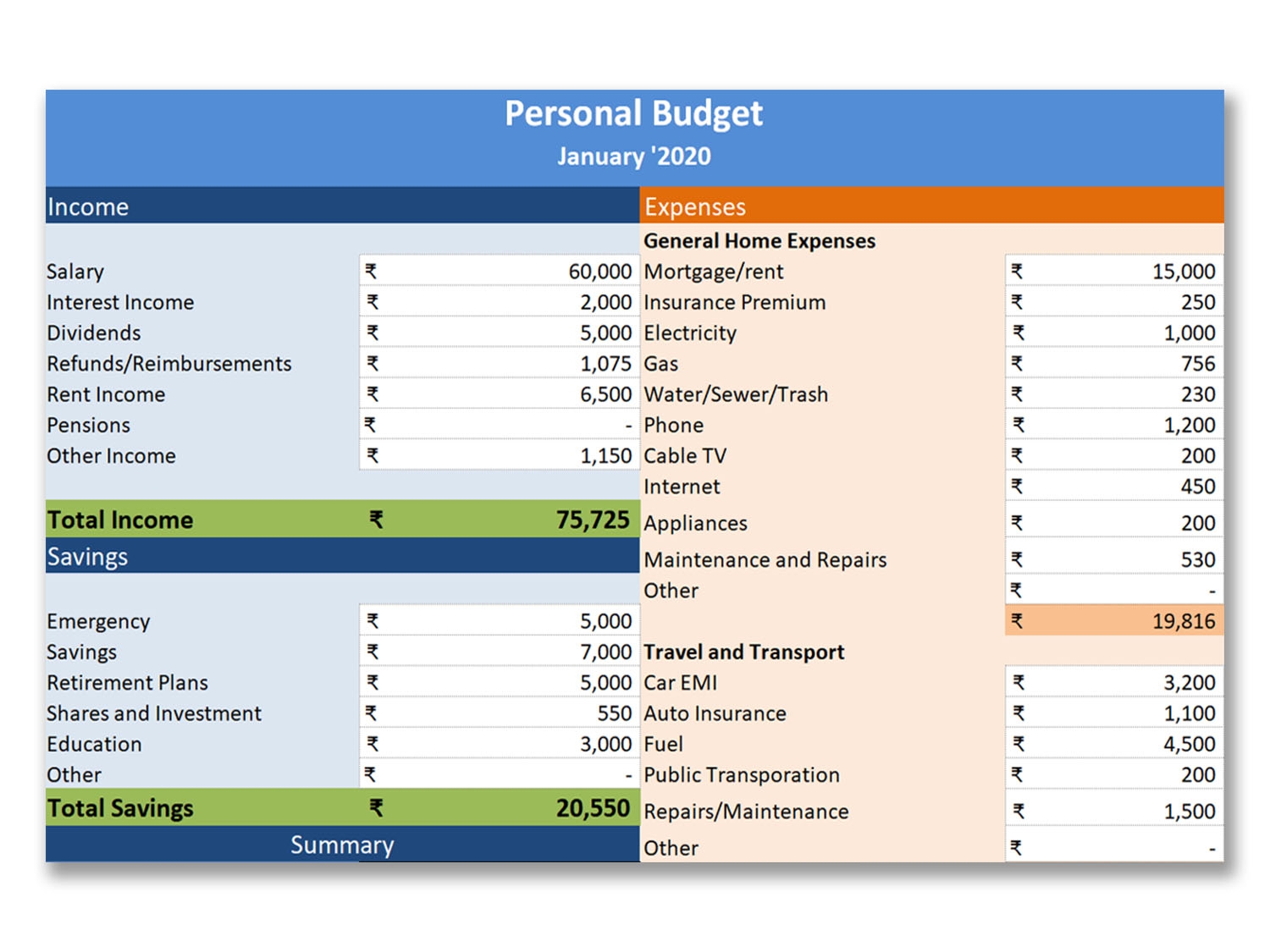 EXCEL Of Personal Budget Template xlsx WPS Free Templates