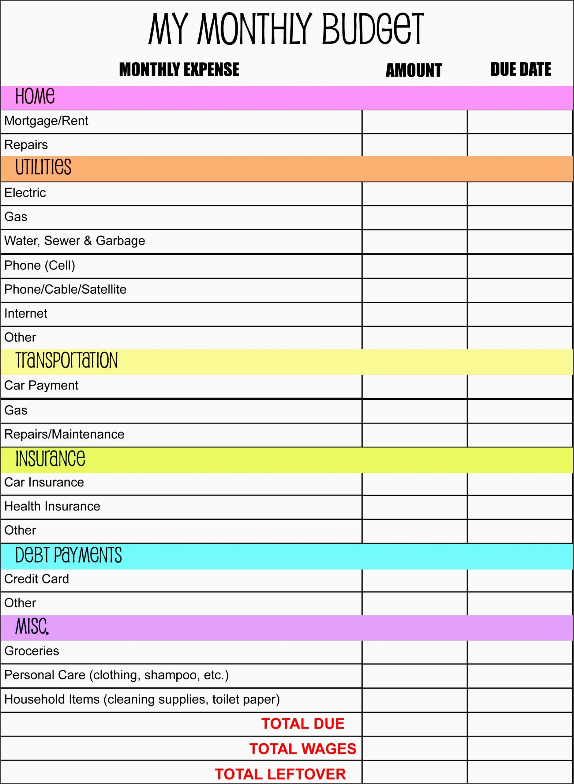 Editable Monthly Household Budget Template Frankprobtenkeynae1975 s Ownd