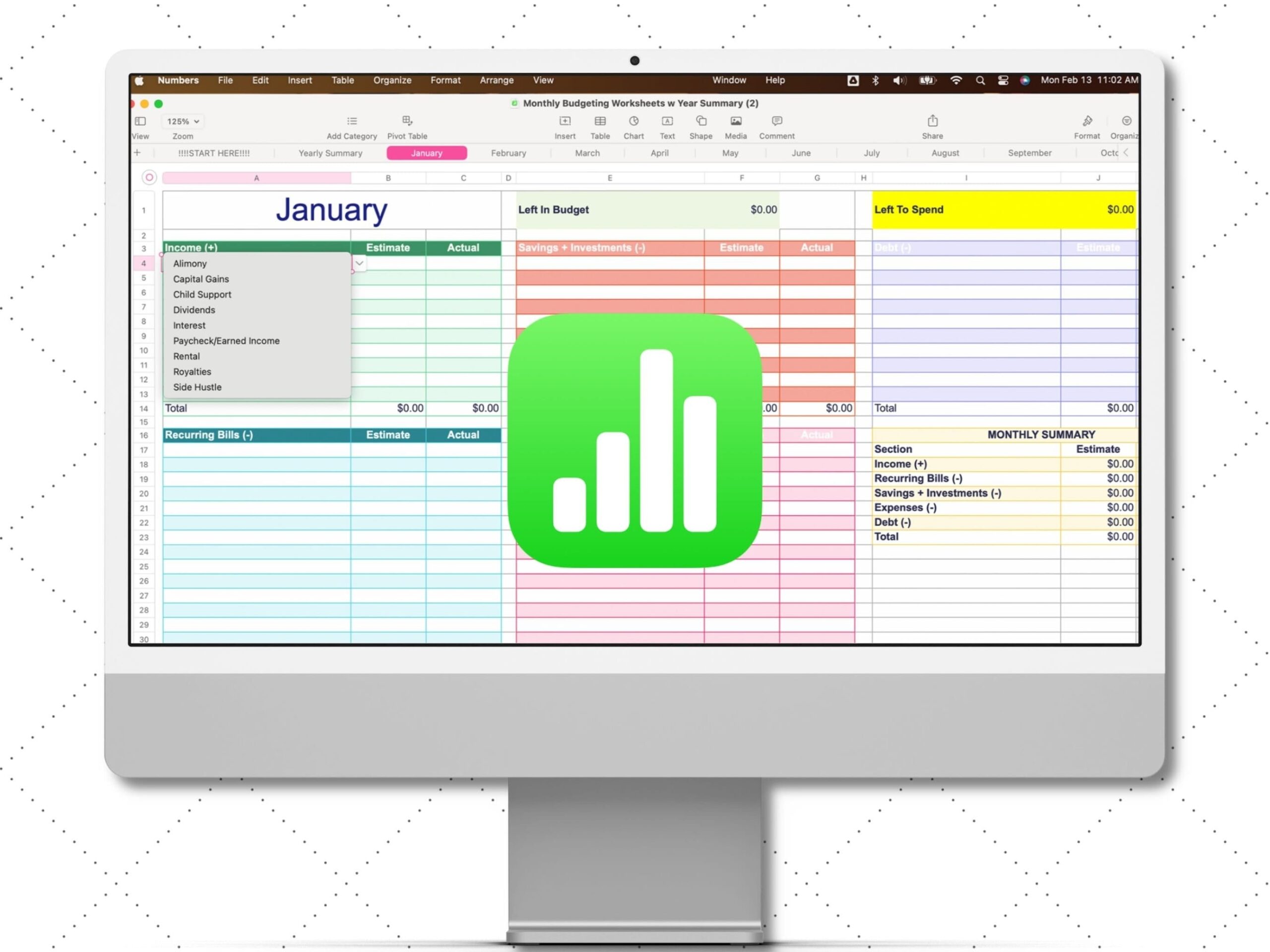 Numbers Monthly Budget Template Zero Based Budgeting Spreadsheet