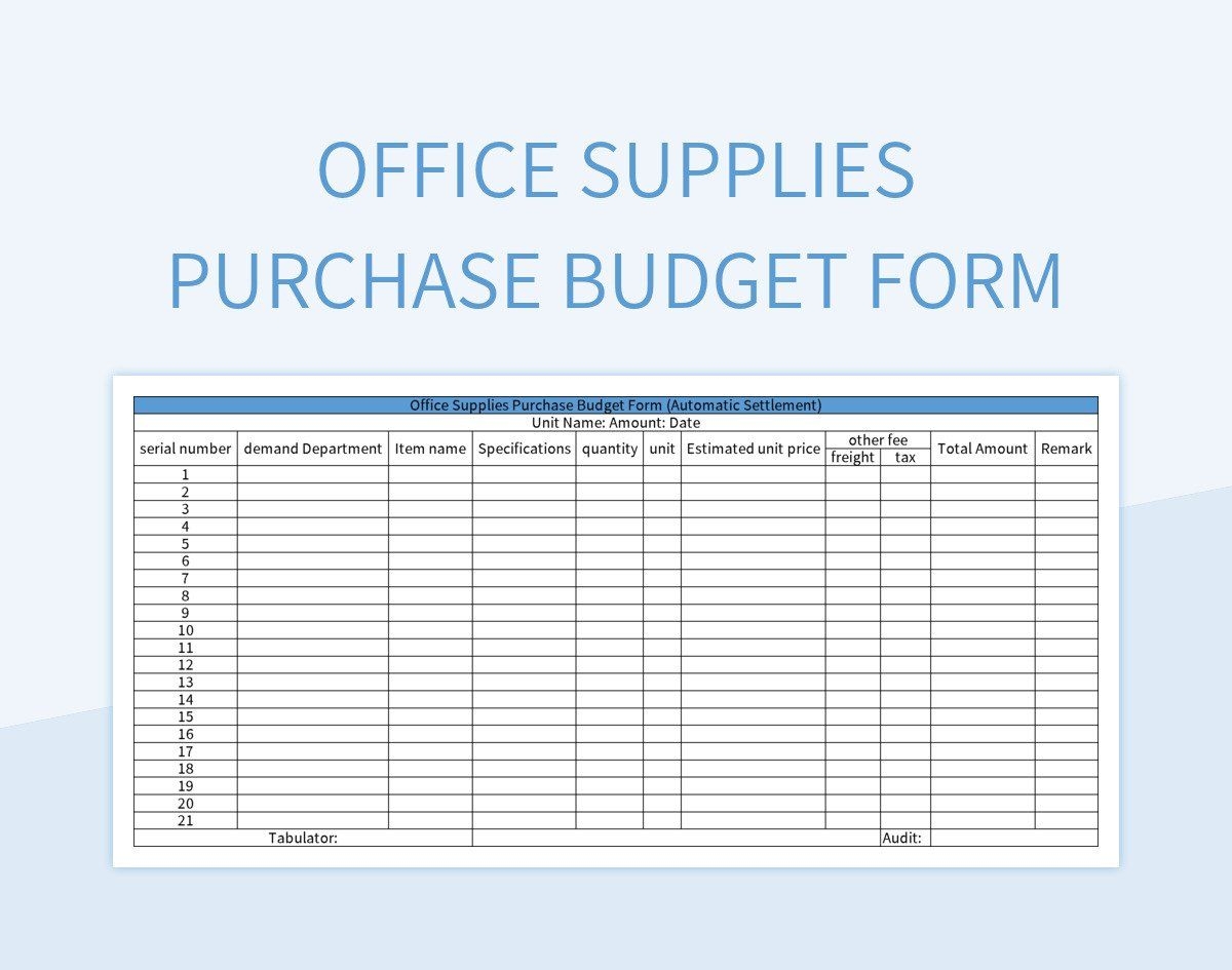 Office Supplies Purchase Budget Form Excel Template And Google Sheets File For Free Download Slidesdocs