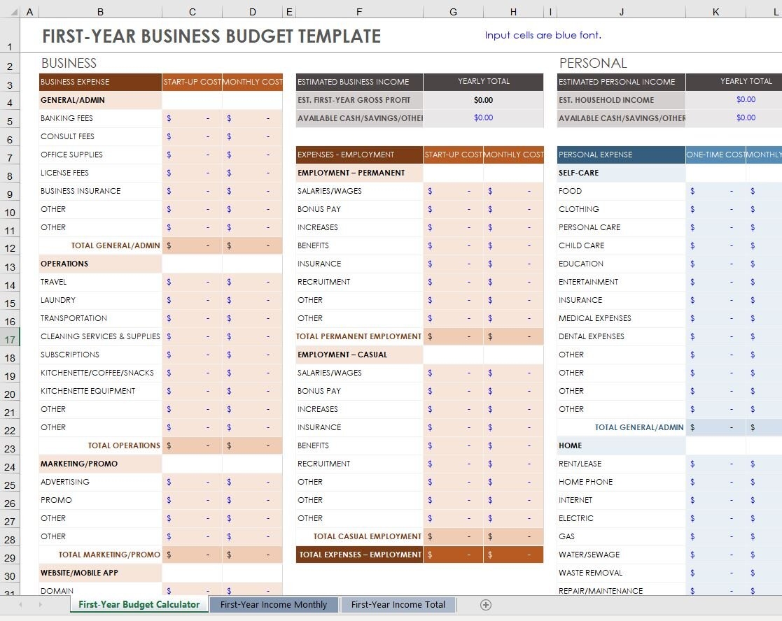 Budget First Year Template Subscriber Accountant Pal