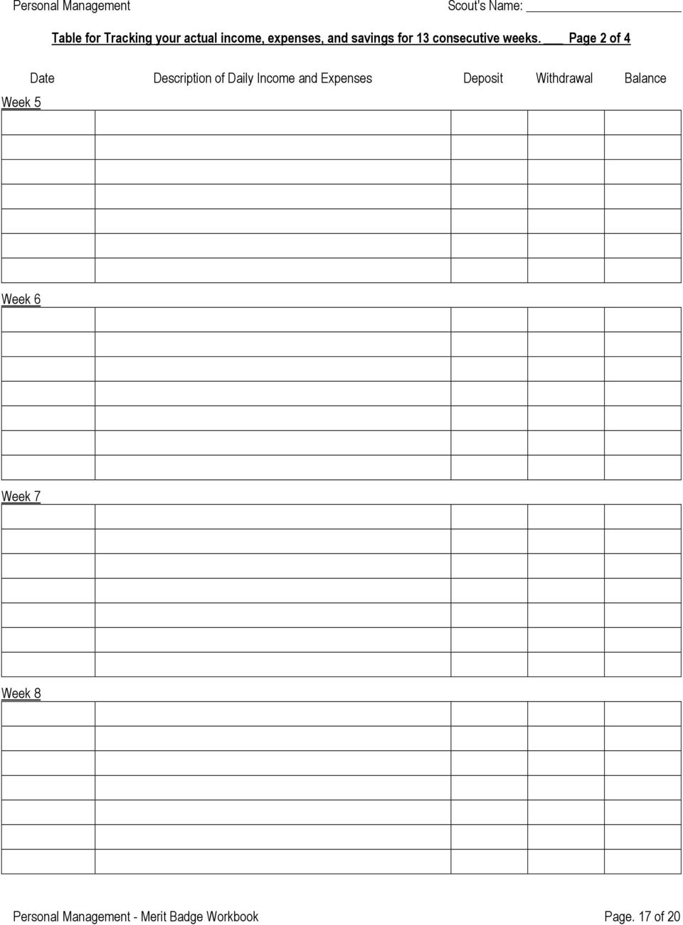 Personal Management Merit Badge Budget Template Fill Out U0026 Sign Worksheets Library