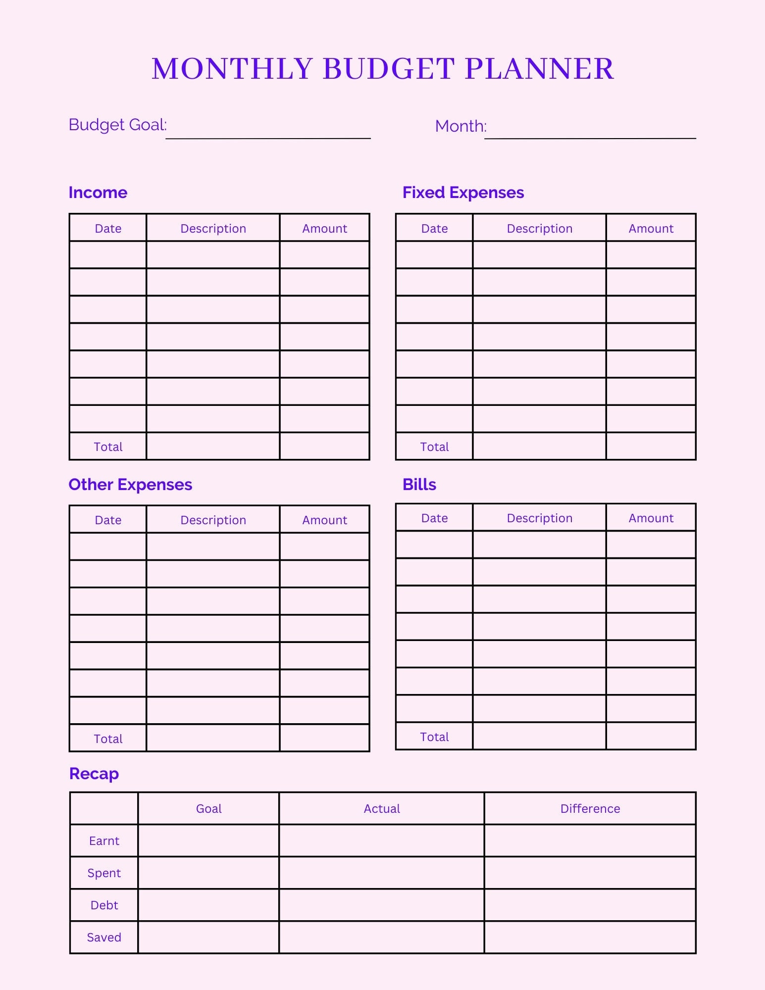 Pretty Little Template Monthly Budget