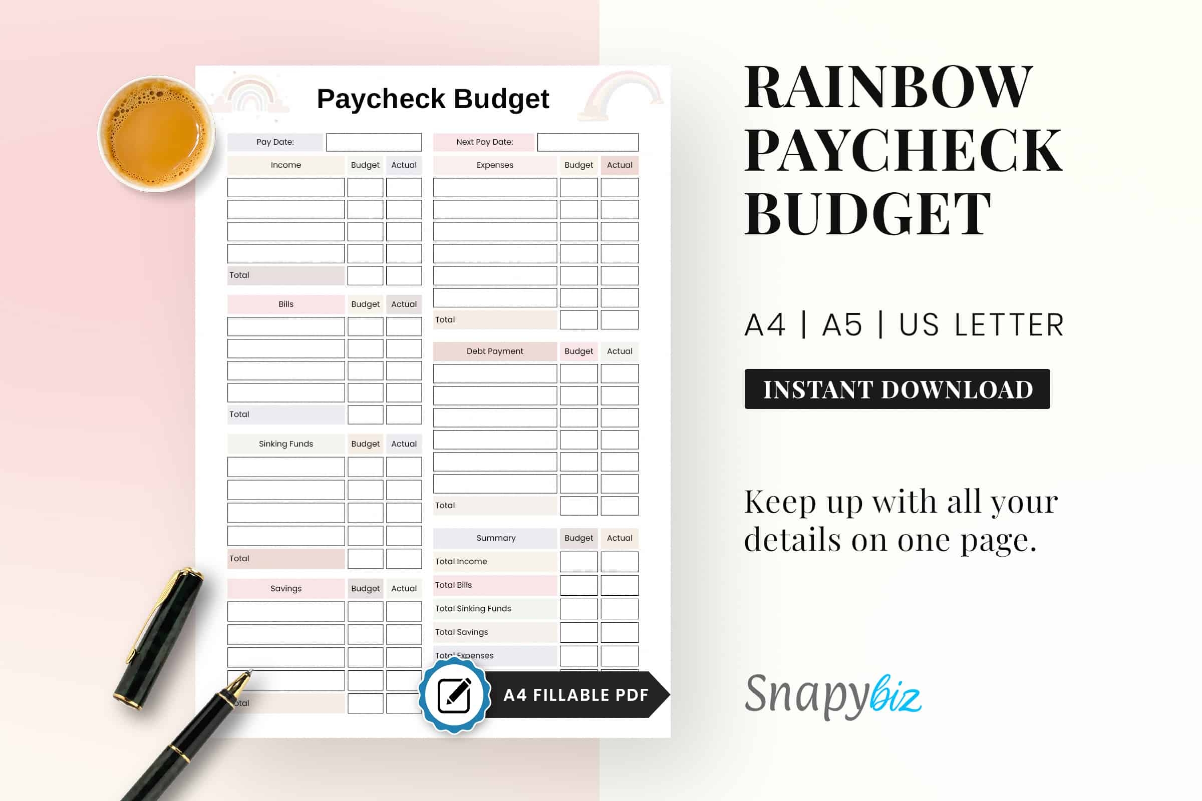 Paycheck Printable Planner Pdf SnapyBiz