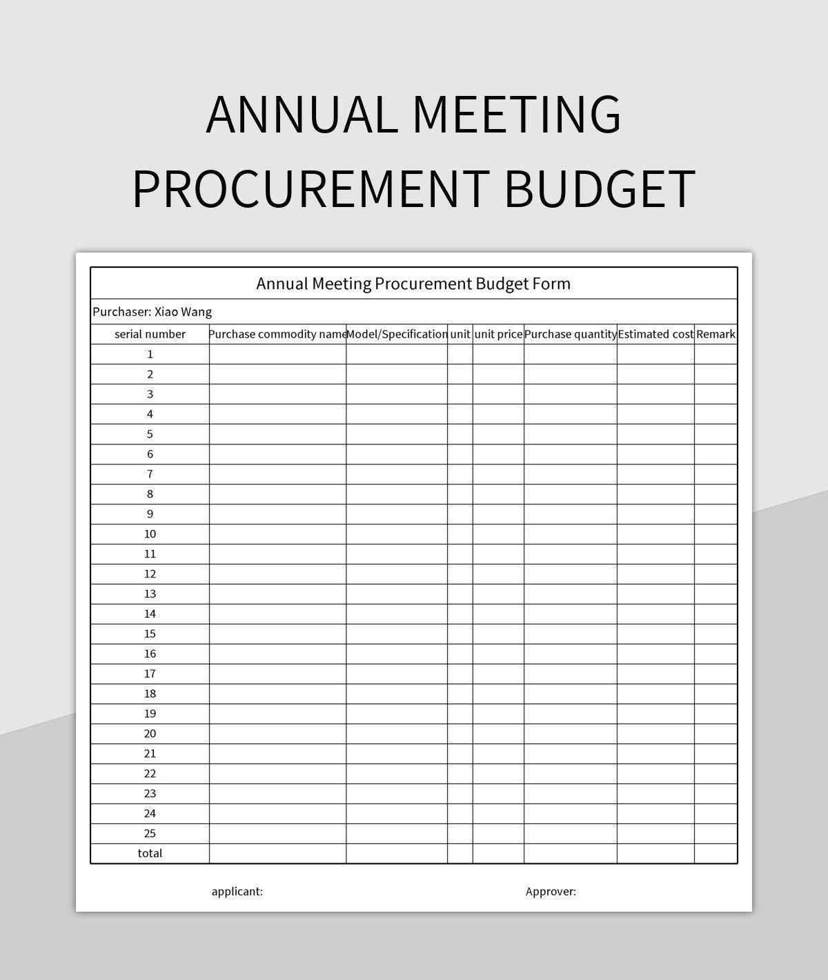 Annual Meeting Procurement Budget Excel Template And Google Sheets File For Free Download Slidesdocs